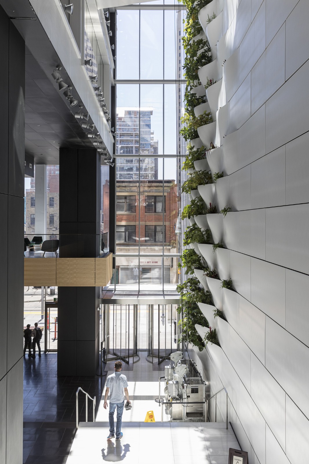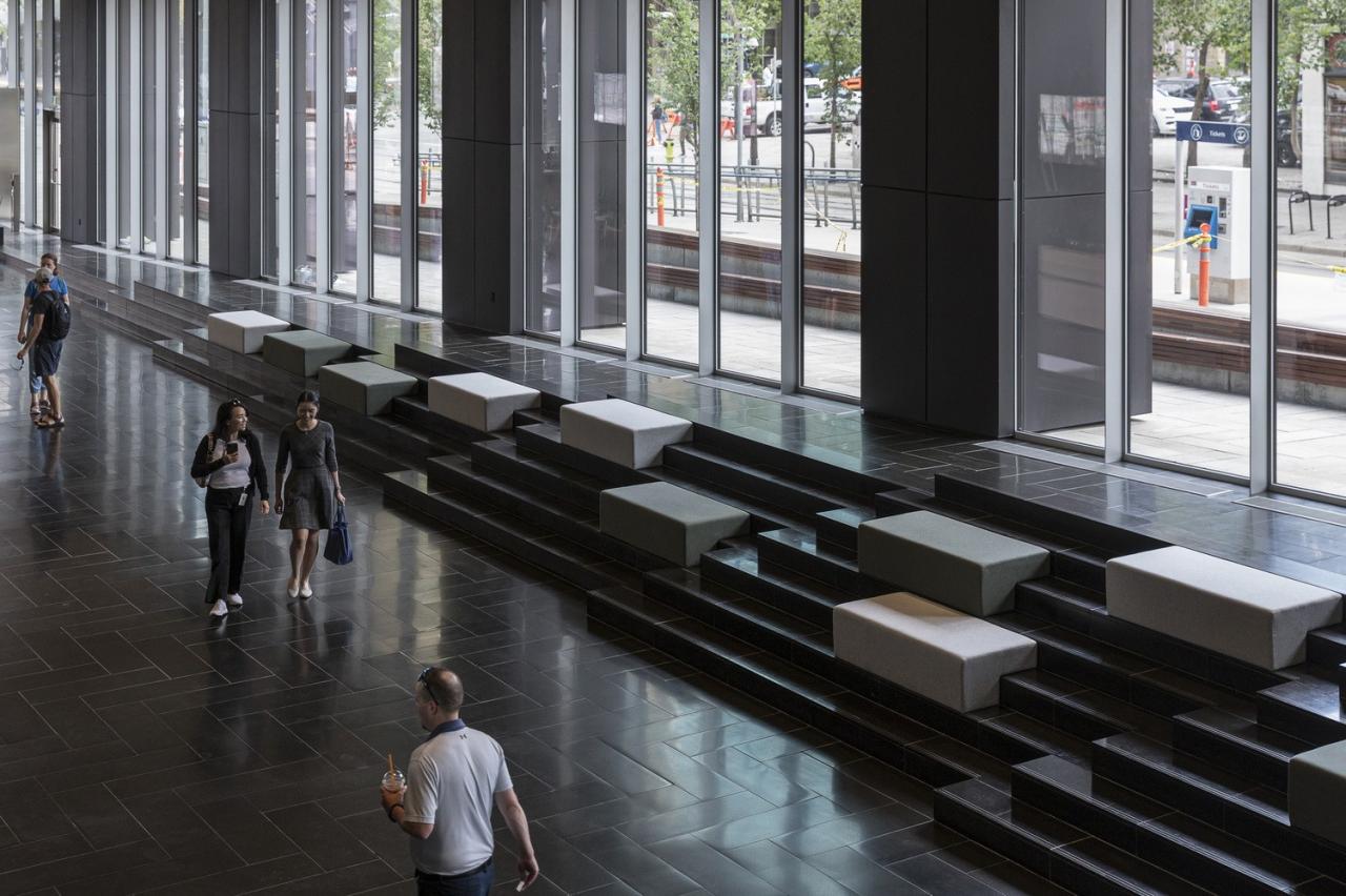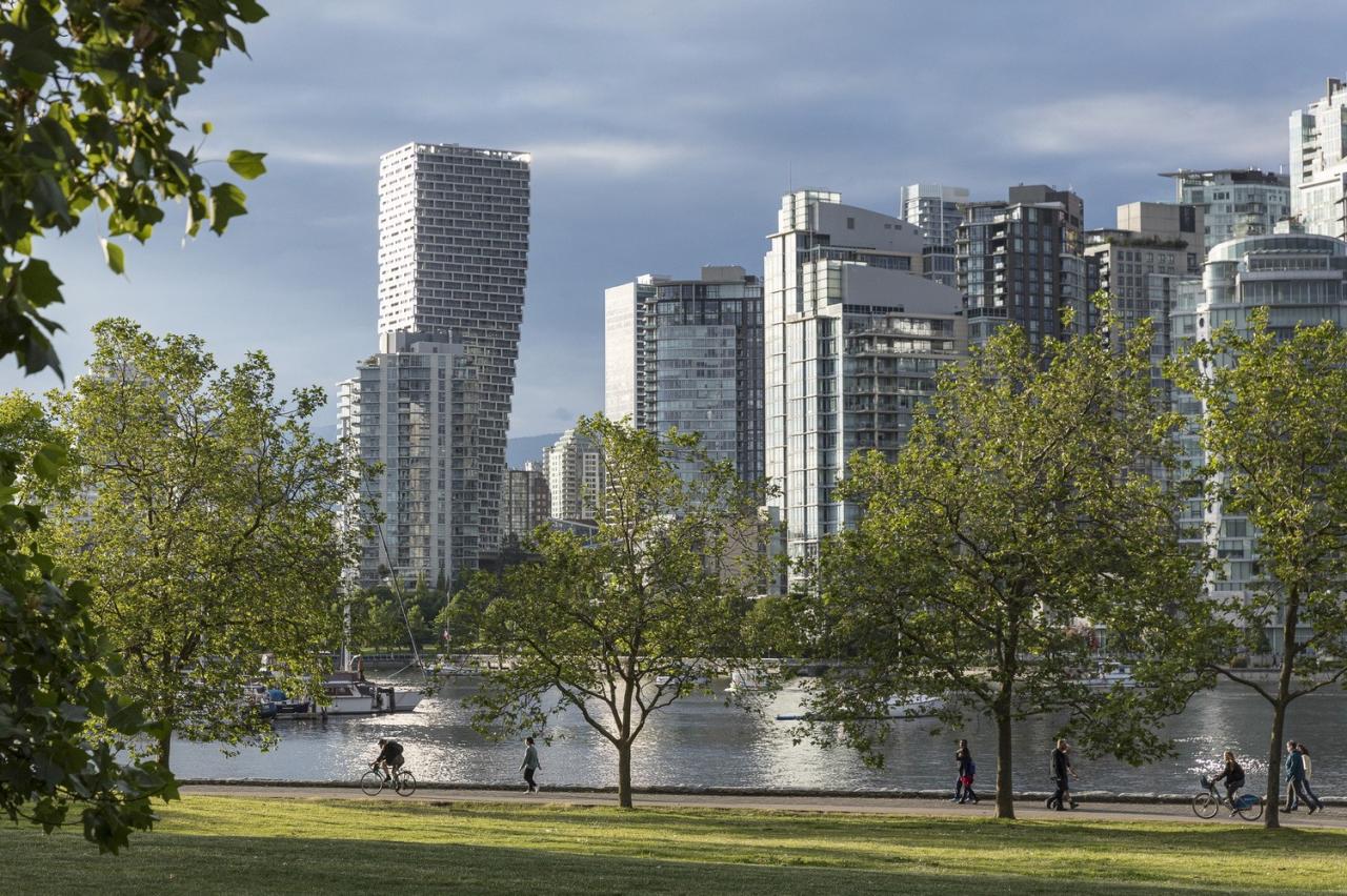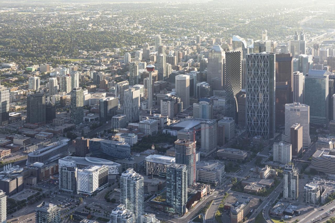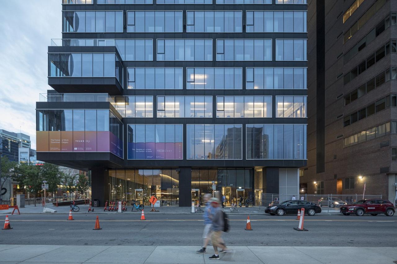 高 220 米的 Telus Sky 塔楼和高 149 米的温哥华之家容纳了混合用途的办公室和住宅空间,并于各自的平台与自行车道和人行道相连。此外,两座建筑物都拥有最高水平的能源和环境设计。温哥华之家是该市第一座 LEED 白金级认证建筑,而卡尔加里的 Telus Sky 塔楼则以 70725 平方米的建筑面积成为了北美最大LEED白金级认证建筑。