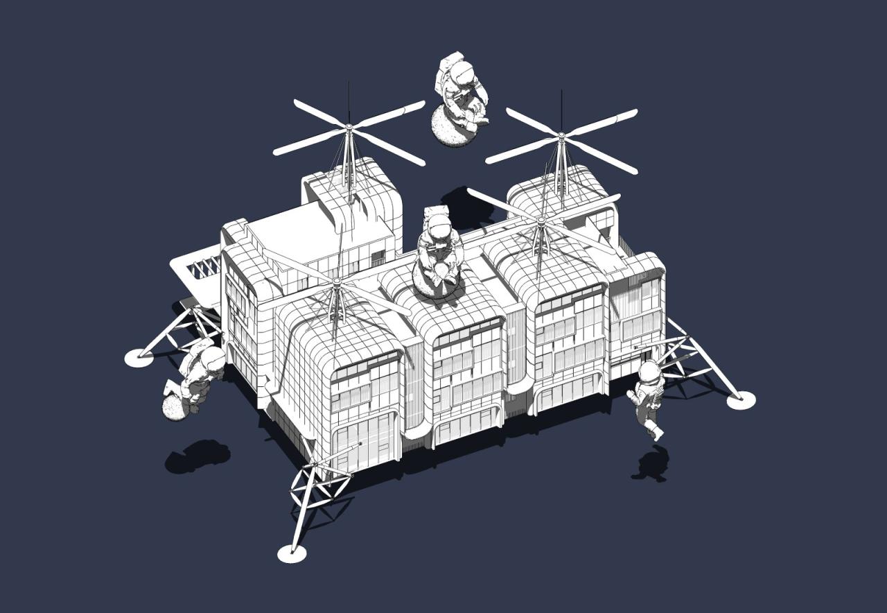 我们对飞行装置、宇宙空间、飞行器的建筑假想,是为了讨论更多这些机械美学在城市背景下为我们的生活方式带来什么样概念性的改变。