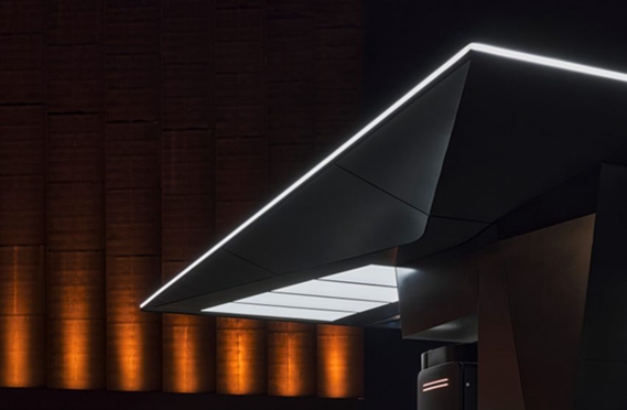 作为“保护伞”, 电动汽车充电站的“翼”由钢结构和铝板制成。每个顶篷边缘都配备了连续的发光二极管(LED)照明,以使电动汽车在天黑后可以从远处识别。