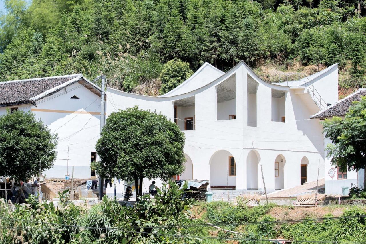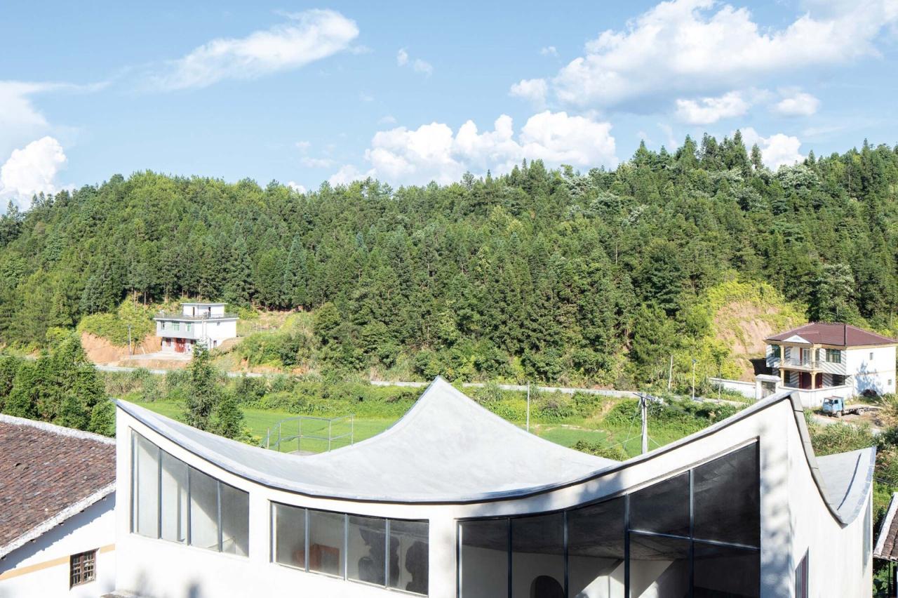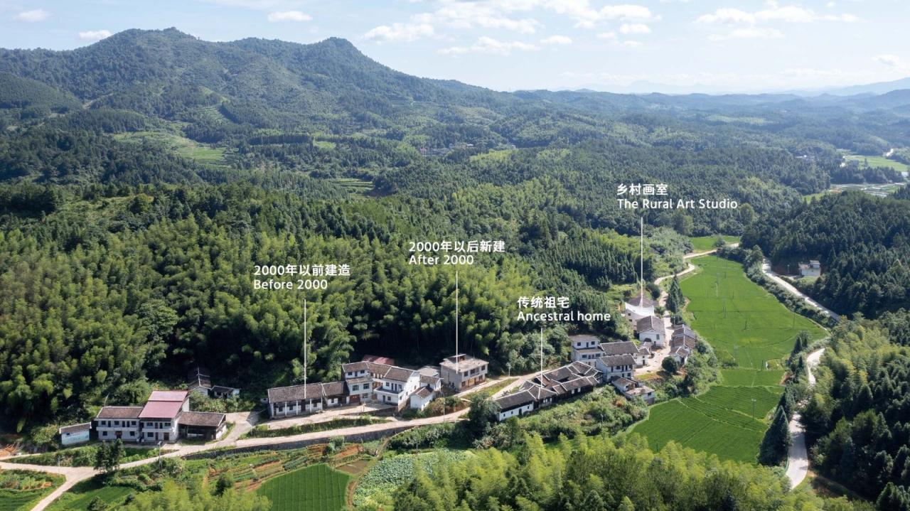乡村生长极简史芦坑村是竹子出生和成长的地方,在深山里,交通并不便利,和很多山里的村子一样它有自己的小环境,画室所在的里坳小组几十栋房子多依山而建,面田而居,现状居住类型多为公元2000年以前建造的一字型二层楼房,中段还保存着一栋合院式传统老宅,已无人居住,2000年后建造了一些新式外贴瓷砖的农居房,这三个时期的房子记录这个村子的生长简史。如果竹子没有回家盖画室的想法,这个村子应该会继续以新式农居房慢慢替代上世纪住宅的方式,安静地更新生长,或者随着常住人口的减少而慢慢停止生长。画室的出现应该是这个村子生长史上的一次美好的意外。我们希望在这片乡村生长史的水面上激起一点涟漪。