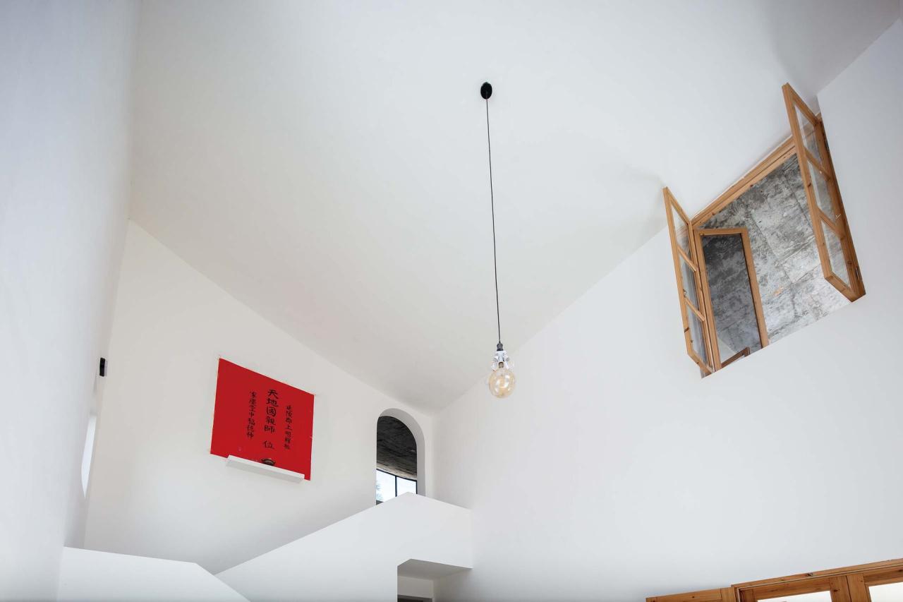房子盖好后房子盖好后,竹子亲自在画室制作了一批可爱的家具,从床、桌子、凳子、灯具到工具架,家具中局部出现的弧线,说是为了呼应屋顶的曲线。房子盖好后,竹子为房子起了一个名字,叫“反曲小筑”,并写了一副对联,“反观常物穷思变,筑就乡村新容颜”。成为独立艺术家的竹子在村子里多少有些反常,这幅对联应该就是他内心的独白,所谓的反常对他来说可能就是思考角度的不同,是一种反思,他想通过建筑师把自己的反常以一种可见的方式表达出来,反常便有了积极的意义。作为建筑师,一座反常的房子可能意味着有趣,为日常生活置入一些可以遐想的空间。房子盖好后,过年竹子家邀请亲戚们团聚吃饭,办了八桌,画室成了宴席的大厅,渐渐淡去的年味在那一刻似乎又回来了。