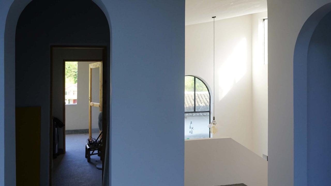 房子盖好后,因为拍摄我、竹子以及摄影师夏至去住了两天,我们仨想聊天的时候就随时找地儿聚在一起,檐廊、餐厅、画室、客厅、树下或者屋顶,想独处的时候也能随时找到各自的角落,很自在。那时正值夏日,村子里安静得只剩下蝉鸣、鸟叫甚至微风吹动树叶的声音,时间变得无比缓慢,发呆的时候甚至有些恍惚,时而觉得自己身处平常恬淡的乡间,可能因为有了这个房子的存在,时而又觉得自己进入了童话里的夏天,稻田、西瓜、老人、小孩、土狗、圆门洞、竹子的画、曲屋顶、屋顶下筑窝的燕子以及上弦月…
