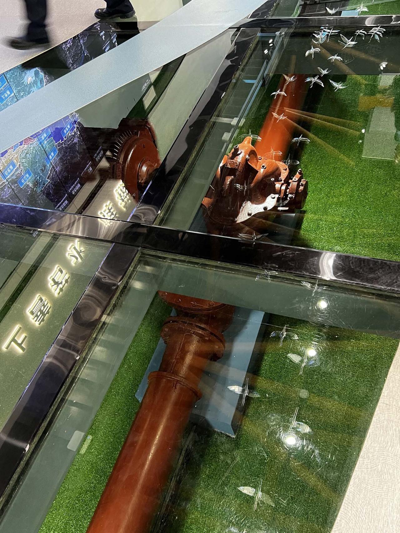 双曲面屋顶意味着必须使用弧形主次梁,这对传统的制造工艺是一个巨大的挑战,但在数字化时代,这并非难事,全过程的数字技术和机械臂轻松地完成了从CAD(计算机辅助设计)到CAM(计算机辅助制造)再到CAE(计算机辅助施工)的“无缝”连接,完整地实现了原初的设计预想。旧厂房中设置有水泵、水管、阀门等机械装置,这些都是当年水厂的核心设备,我们期望能在新展厅中完整地保留这些遗存物,并对其予以展示,这一想法得到了主管领导的高度认同,最终得以实现。如何在风景名胜区建造?这是一个涉及价值观和方法论的老问题,有人认为设计仿古建筑是与环境协调的可靠方法,也有人认为“协调”是个伪命题,“是否协调”完全是因人而异的主观判断,建筑的当代性才是值得当代建筑师追求的目标。本项目意在探索一条以谦和的方式,创造属于此时此地之建筑的道路。