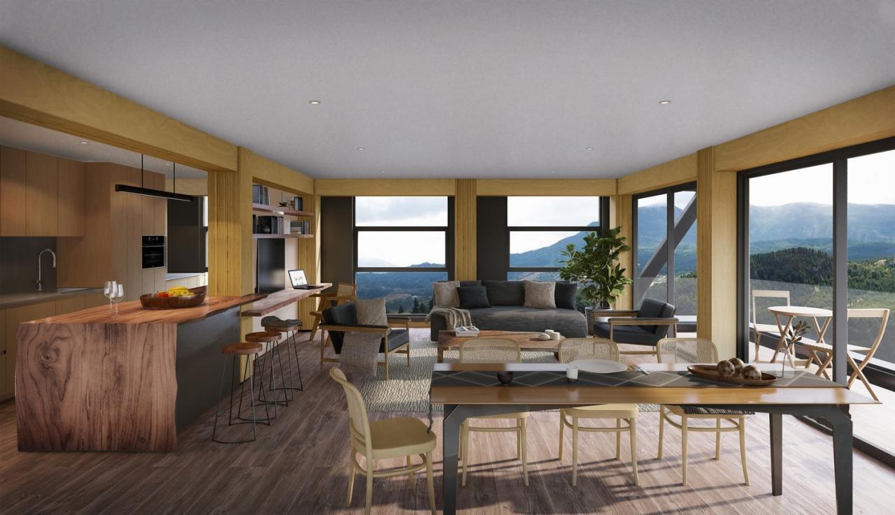 大型木材产品——也被称为“能够形成结构性承重元件的压缩层”,使用最新的创新技术来连接木材层,可以为板、柱和梁创造可调节的尺寸,形成高强度的体系(很像混凝土和钢),但重量明显更轻。Tamango 的结构是由预先设计的木材物料——CLT、LVL 和胶合木,与具有不同结构尺度的质量保证的锯材一起组合研发的。