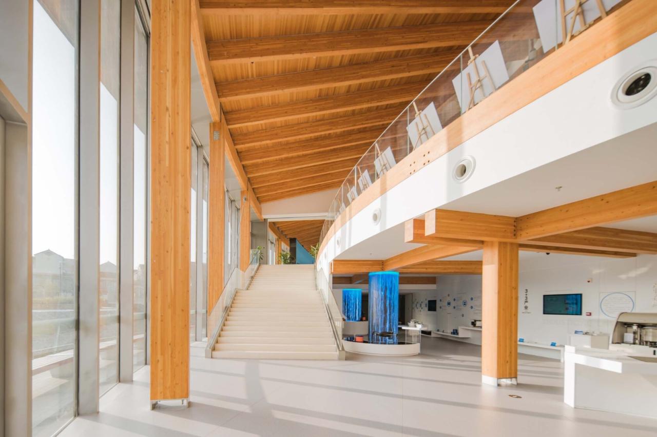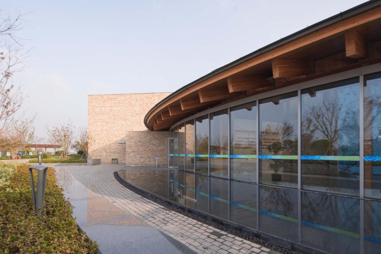 理念以“百年烟雨,一叶扁舟”的设计理念践行“低碳节能、绿色可持续”的建筑目标,将时代与文化相融合彰显善韵江南、源远流长的人文底蕴。“忆西塘,最忆是长廊”。建筑空间构成是西塘古镇空间脉络的传承,围绕建筑一圈弧面大屋顶从建构到空间的灵感系于西塘之烟雨长廊,长达三米的挑檐附抱周圈水面,是对烟雨长廊揽水入怀的现代演绎。于展廊中漫步,穿越江南百年烟雨。建筑整体以一叶扁舟形象呈现,通过南侧十里港水面的放大引入,如航船破水起航,传承嘉兴红船文化。
