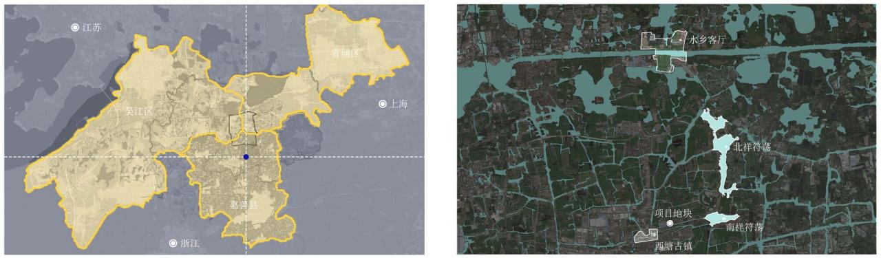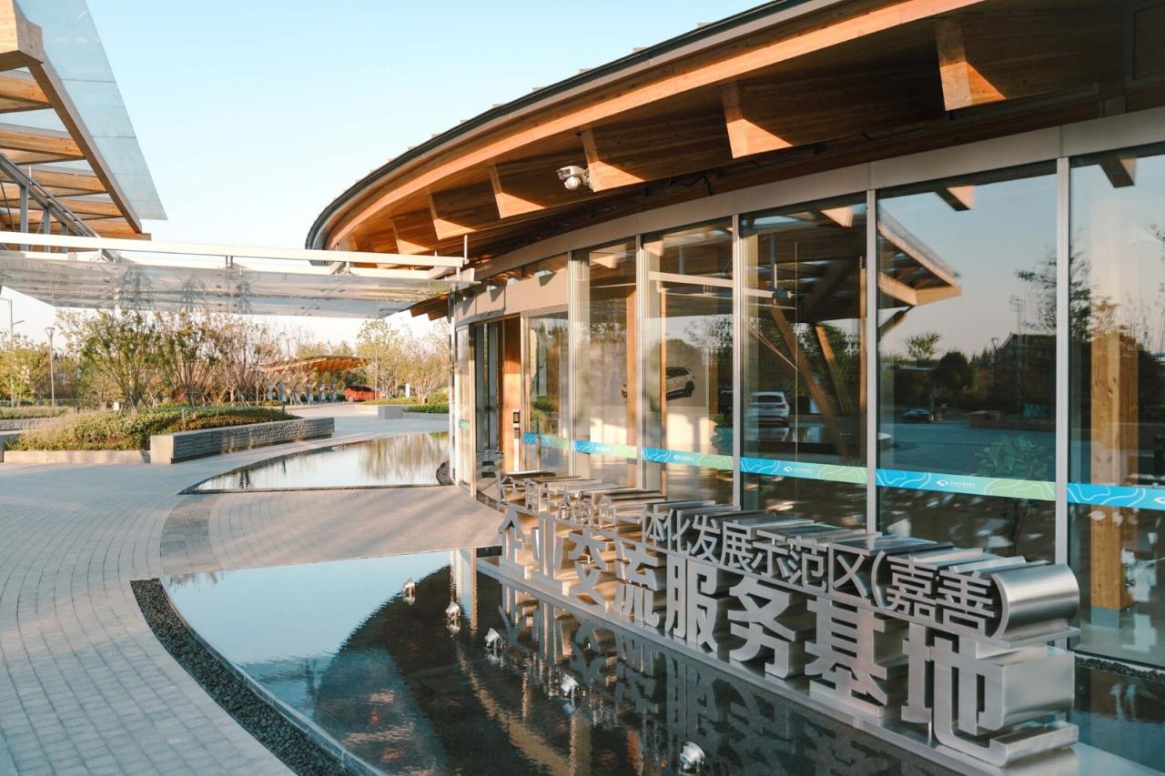 概况本项目选址于嘉善县西塘镇中兴路、贞观路交叉口东南。基地南侧的十里港自然水系西接千年古镇西塘,东达南北祥符荡后联通长三角原点——水乡客厅。紧扣“一体化”“高质量”的发展主题,项目定位强调打造具有江南特色,国际先进的绿色建筑标杆。项目建筑面积约12800㎡,地上两层,包含大、中型会议室、接待室、室内展厅、停车场及室外活动区域,可同时容纳约500人开展会务交流、展览及研学活动。
