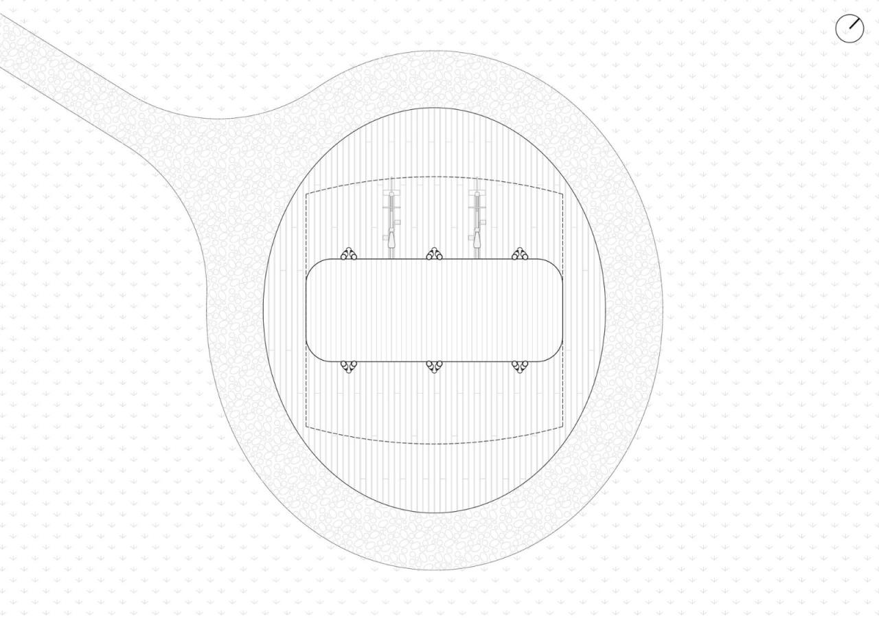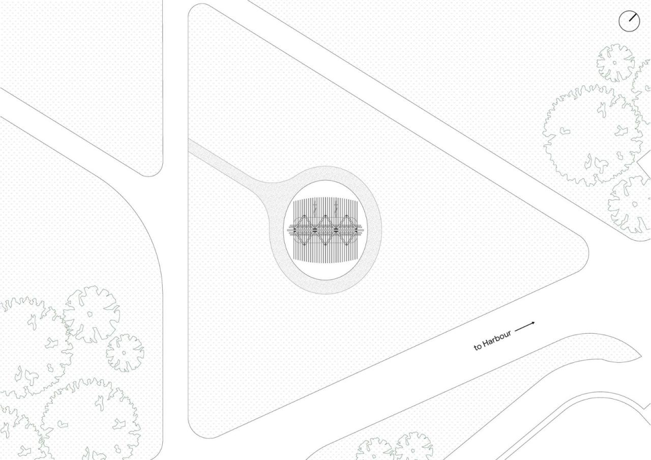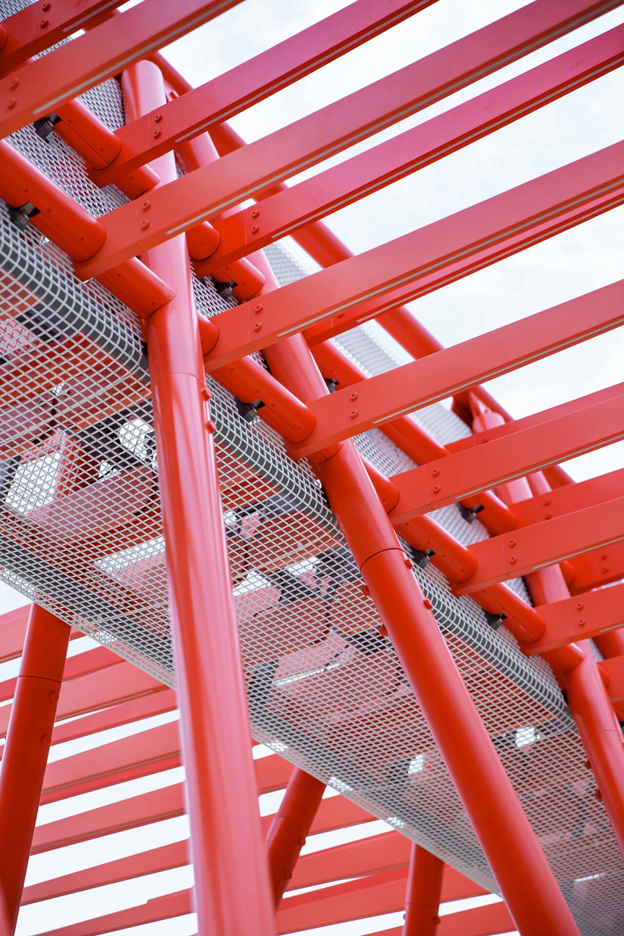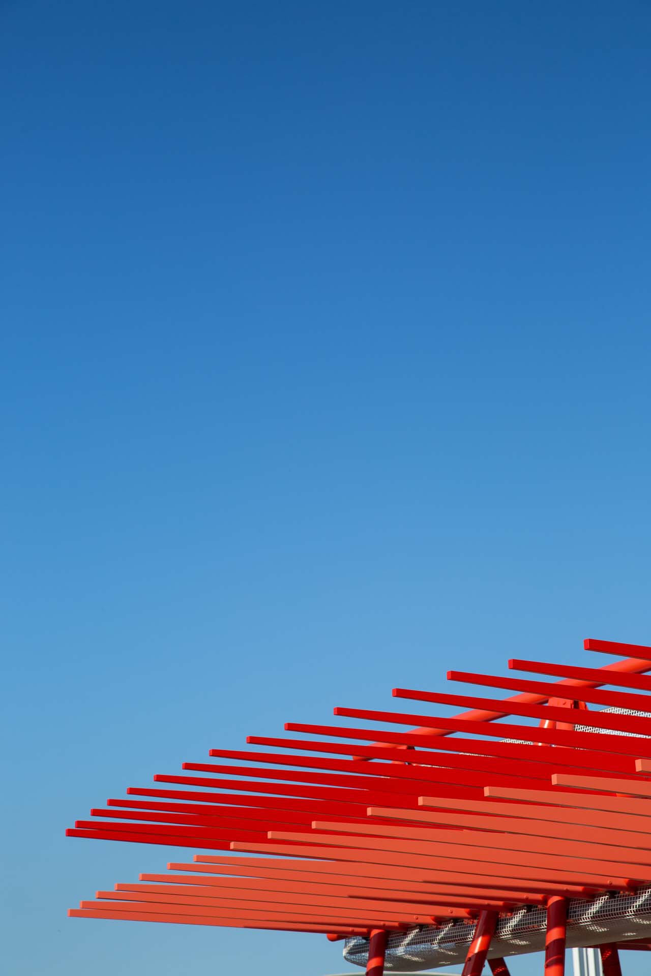 此艺术装置的灵感启发自它们的机械原理,一对双层的飞机翅膀与单车装置,伫立在草地中央,透过婆娑光影,营造出遮荫的公共空间。