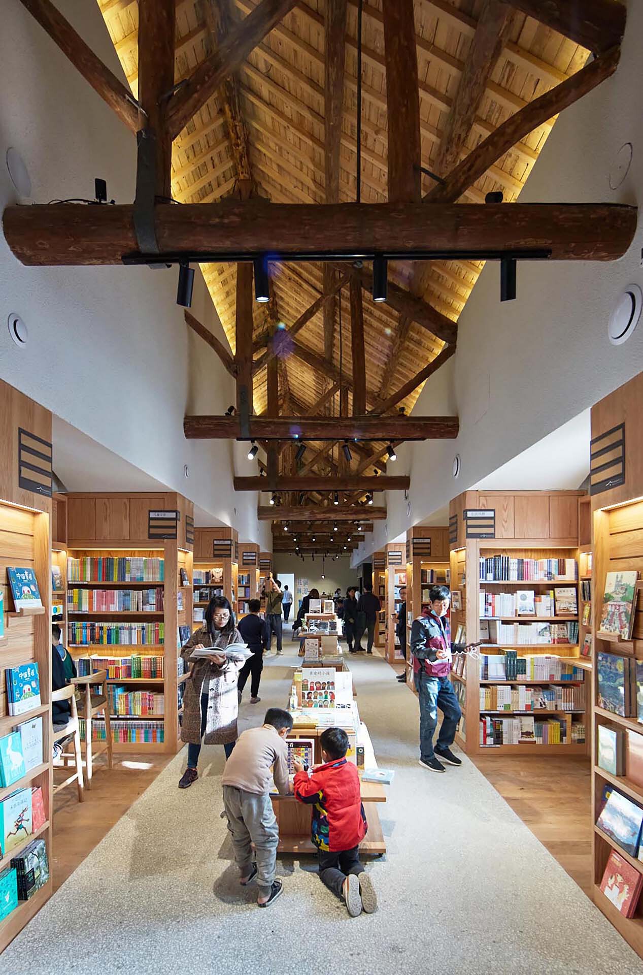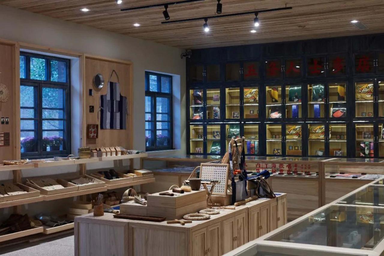 这种过渡空间的强化,对于整体空间里不同功能的分布、交通动线的组织起了承接与转换的作用。比如从街道和广场上,人流最容易被导入的是方所乡村文化空间。改造完成的方所乡村文化处于中心位置,并自然成为几个建筑之间的交通联系枢纽,原先与主院仅有一部户外楼梯作为垂直交通的下沉院,通过新建的餐厅平台及连廊,有效串联了书店咖啡厅、工销社、餐厅及艺术展厅,增加了整体建筑群的可达性。