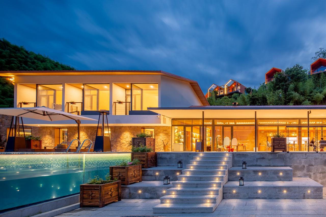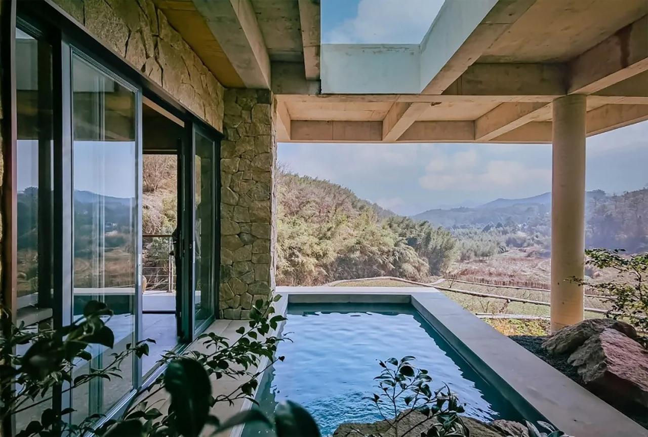 尧珈·养心墅是一处隐匿在山谷中的度假民宿,项目位于浙江省绍兴市诸暨市东和乡章梅塔村尧舜养心谷,设计充分展示了山地建筑的特点,将建筑与山谷融合,作为自然本身的一部分而存在,成为层层山林中的点缀,让久居喧嚣中的人们可以享受 自然,在青山环抱中,回归到生活本身。