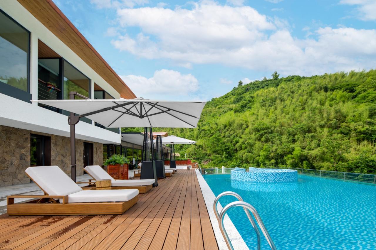 设计理念追求质朴,强调场所带给人的感受,不刻意营造违背自然环境的空间。结合场地原有山势,林间开阔平坦区域作为迎宾、集散场地;依据建筑设计打造泳池,与山林融合;户外活动区利用林下空间,形成林荫下的舒适环境;客房建筑置于半山腰,落地取景窗在朝暮之际欣赏水面、远眺青山,去享受生活的一次定格。