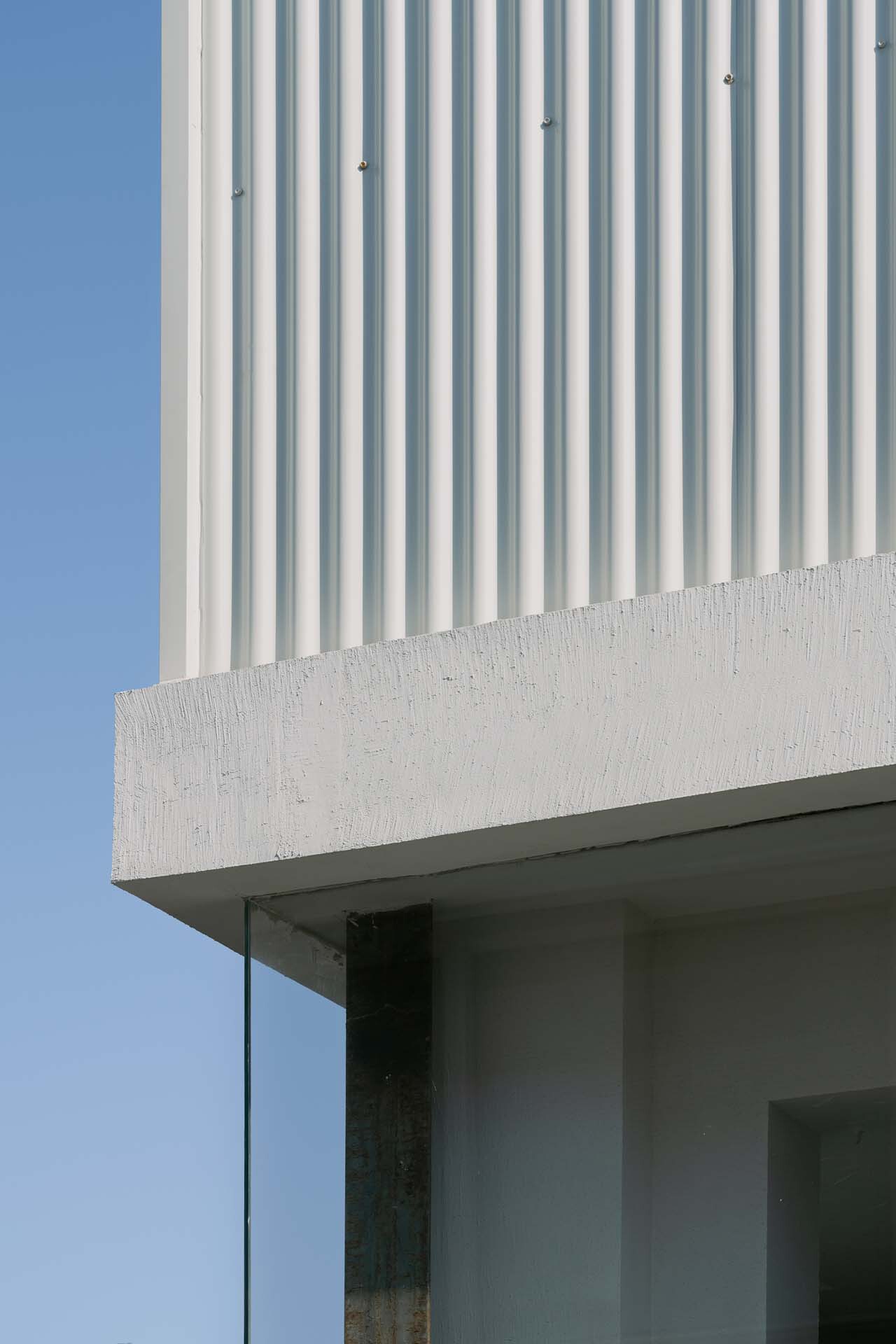建筑外立面材料的选择在回应原本的老建筑风貌的同时,采用了耐久性更好的铝镁锰板作为墙面及屋顶的主要材料。玻璃则采用了无边框的简洁做法,用简洁的方式突出强调铝镁锰板的材料。