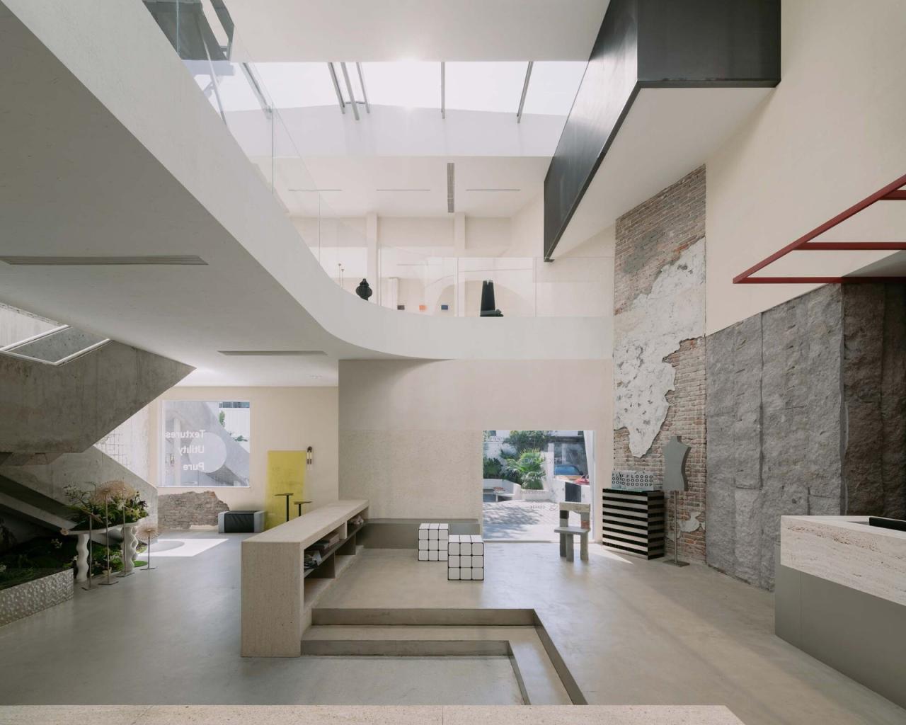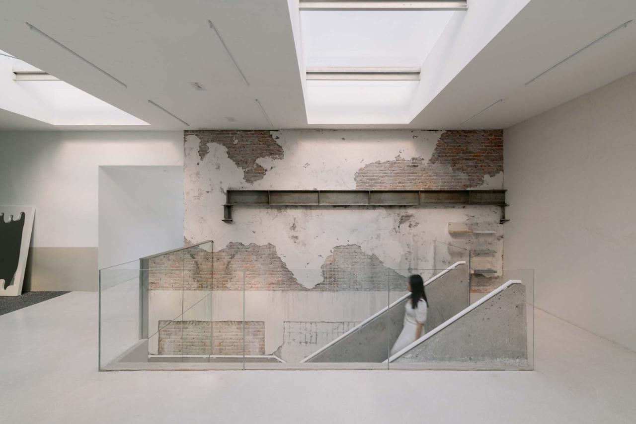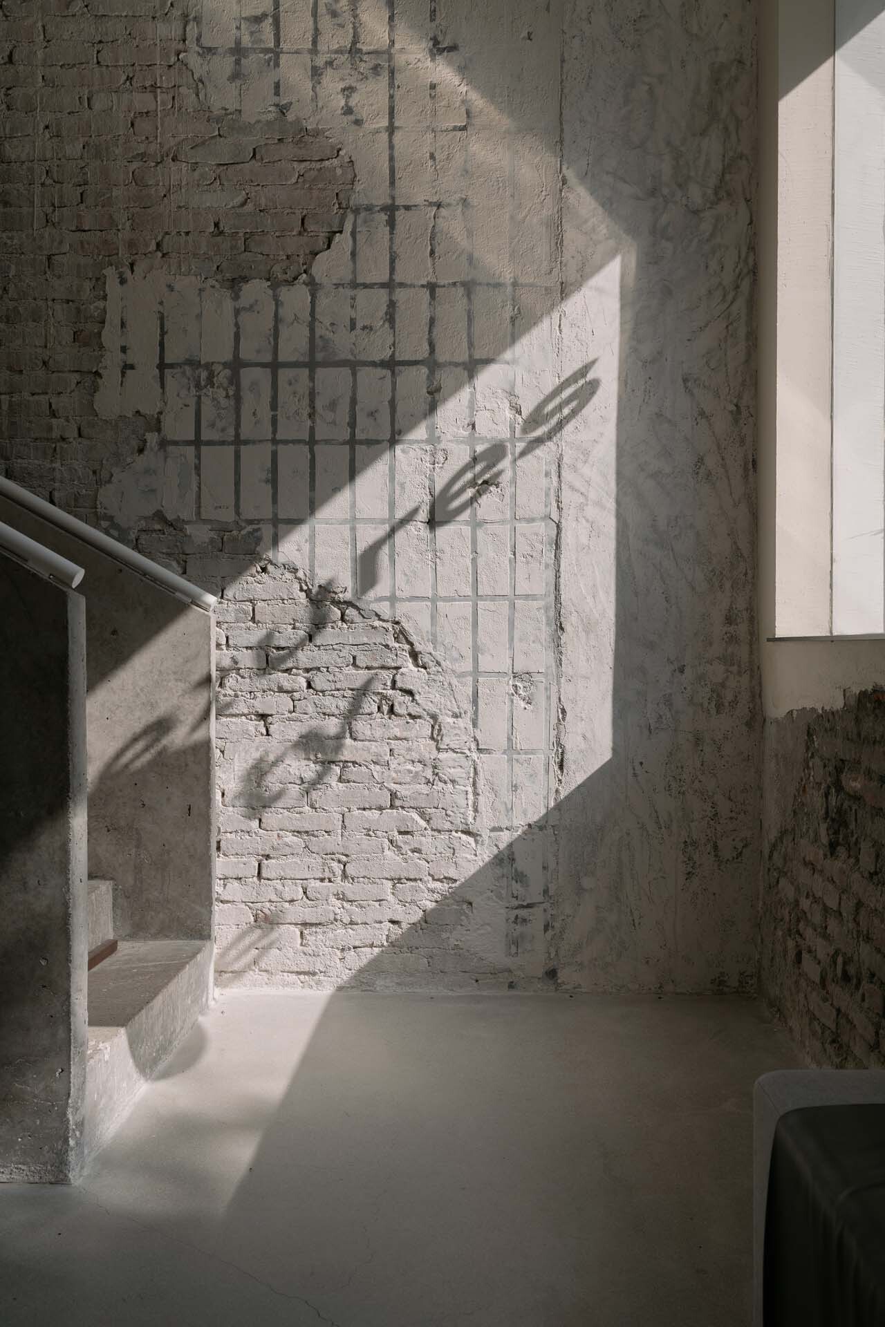 通过建筑材料的变化去回应商业摄影所需要的不同质感层次的空间。在施工过程中,受潮墙面自然掉落形成了一种特殊的剥落感,这种剥落感展示了原有建筑的材料,而这样偶然获得的墙面效果我们把它保留了下来。