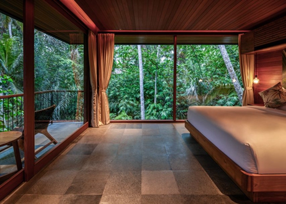 建筑师亚历克西斯-多尼尔(Alexis Dornier)在巴厘岛的一片雨林中完成了三座高跷结构,其特点是悬臂式生活空间和面向树梢的阳台。