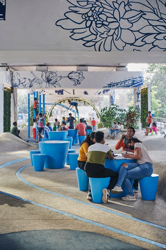 这个公园位于塞纳帕蒂-巴帕特-马格立交桥(Senapati Bapat Marg)下,长度为800米,起伏的景观结合了大量种植和明亮的蓝色城市器具。该场地被MVRDV工作室称为“混凝土基础设施的单调元素”,是横跨孟买11公里的高架道路网络的一部分。