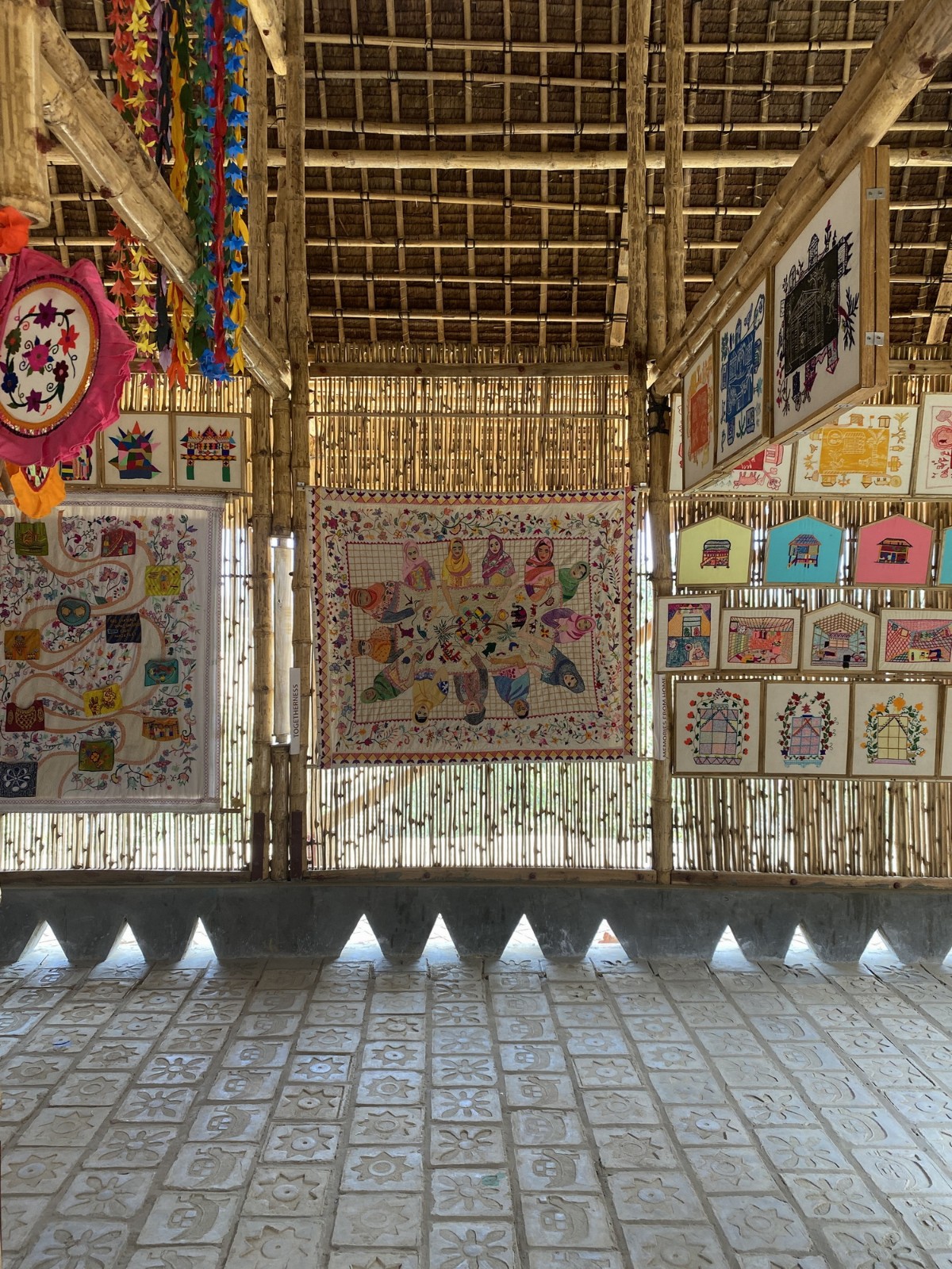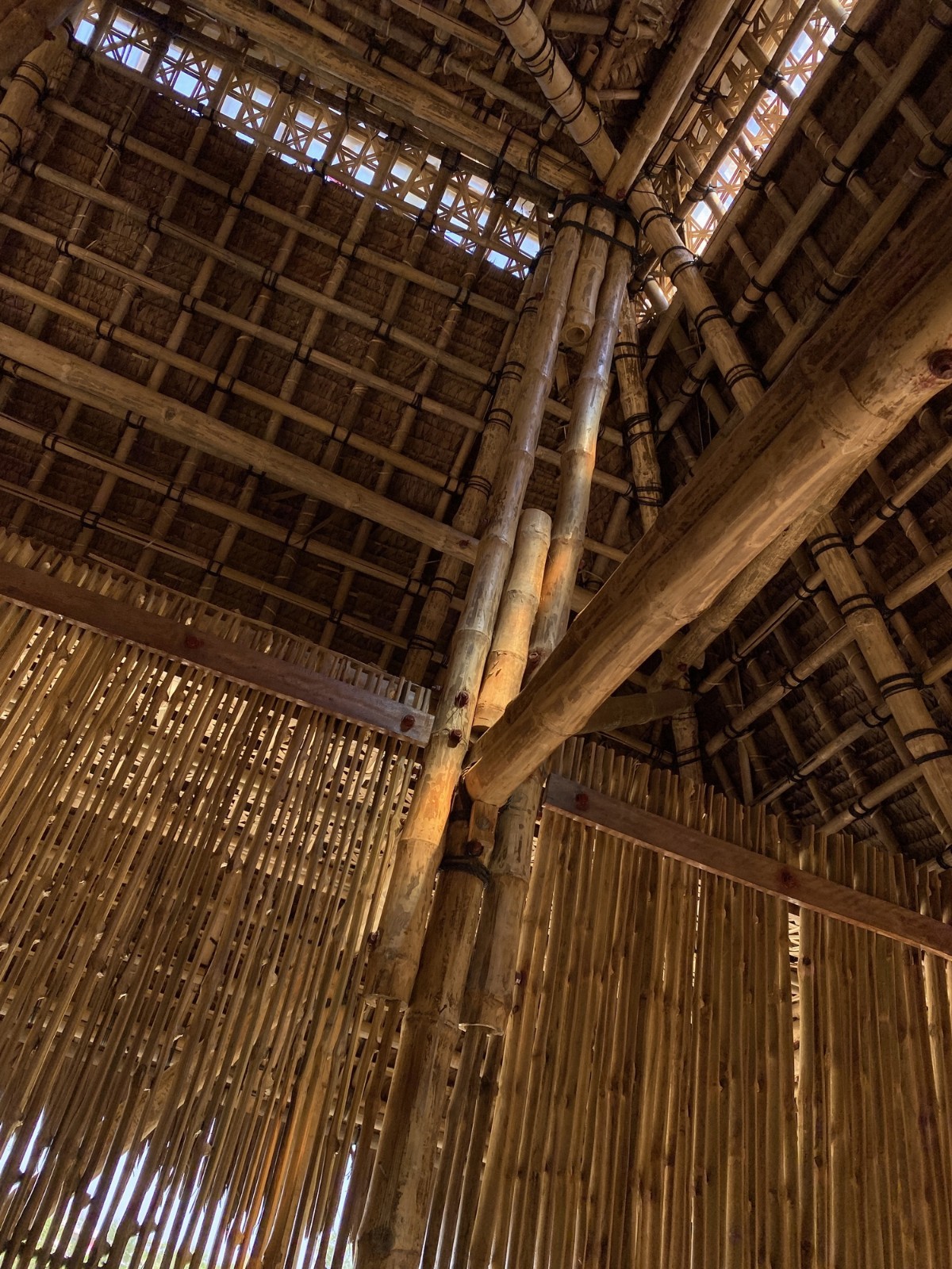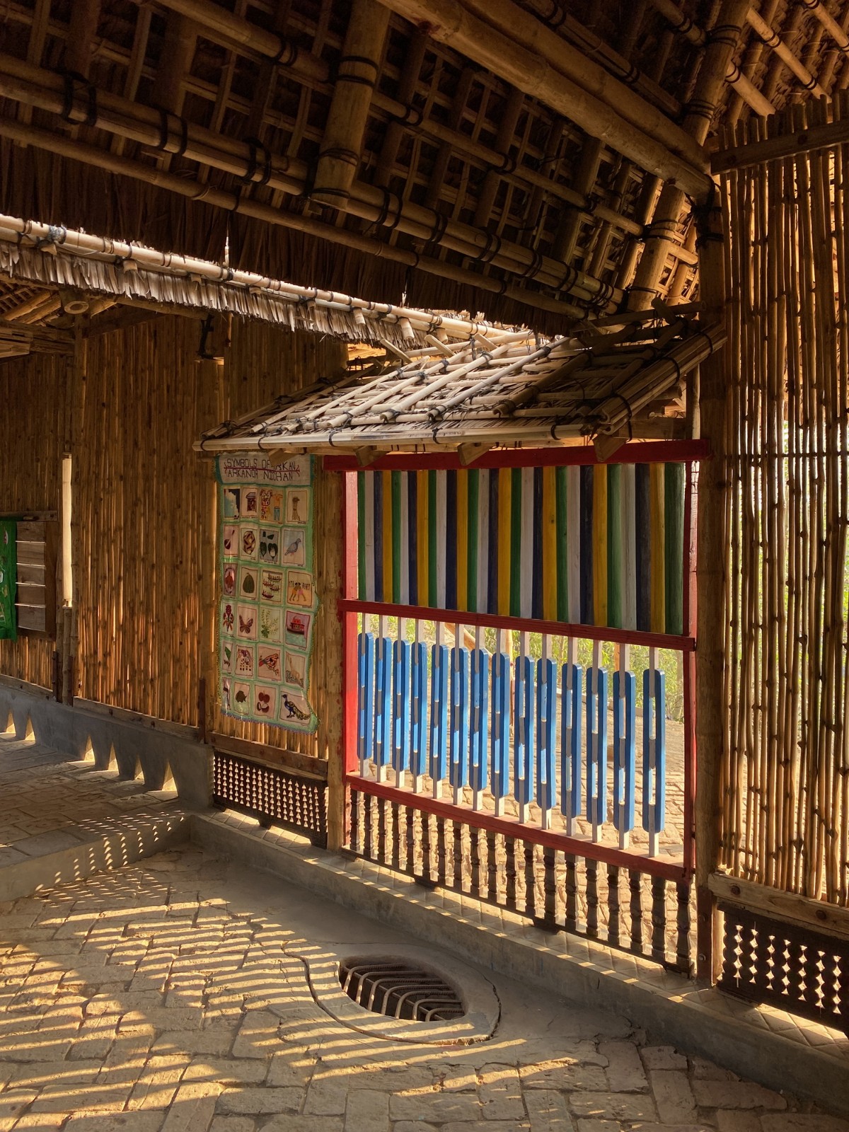罗兴亚文化记忆中心的回形屋顶从四侧向中心倾斜,从而在需要时可以在中心收集、利用雨水。此外,人们在建筑中打造了四个中庭,由此为内部展示空间提供了自然光线,并为其营造了一种静谧的氛围,从而让人们享受美好的回忆空间时,将难民营的糟糕生活隔绝在外部世界中。并且,建筑大厅中最具代表性的坚固竹制穿孔屏风确保了展览空间的透气性,同时它还在确保隔断安全性时,在内外空间之中建立了视觉联系。罗兴亚文化记忆中心的设计确保了展示厅与厅之间及空间内部的通透性,从而让建筑更好地利用山土以应对雨水,并且也源源不断地补充了地下水资源。罗兴亚文化记忆中心的建造是一个集结了材料工艺、匠人贡献及社区记忆的合作项目,同时它也为罗兴亚人打造了一个可以纪念过去和现在的美丽建筑。这一建筑既是临时的居所,也是善事的实践。它促进了人与人之间的相互学习,包容了对与错。它是对所有人的祝福,也是独属于罗兴亚人的聚集之所。