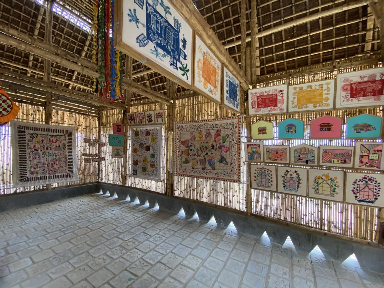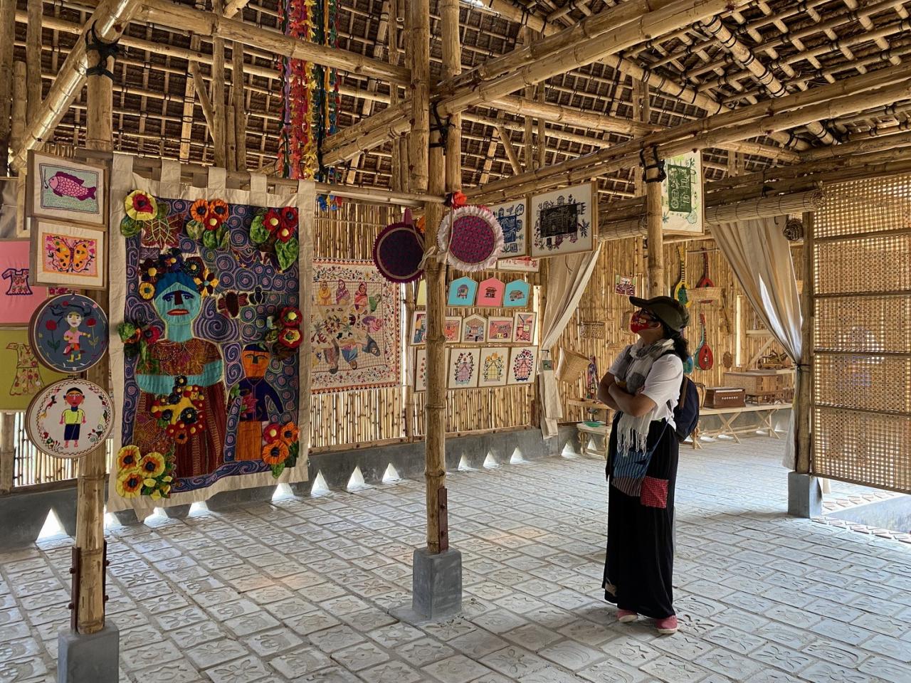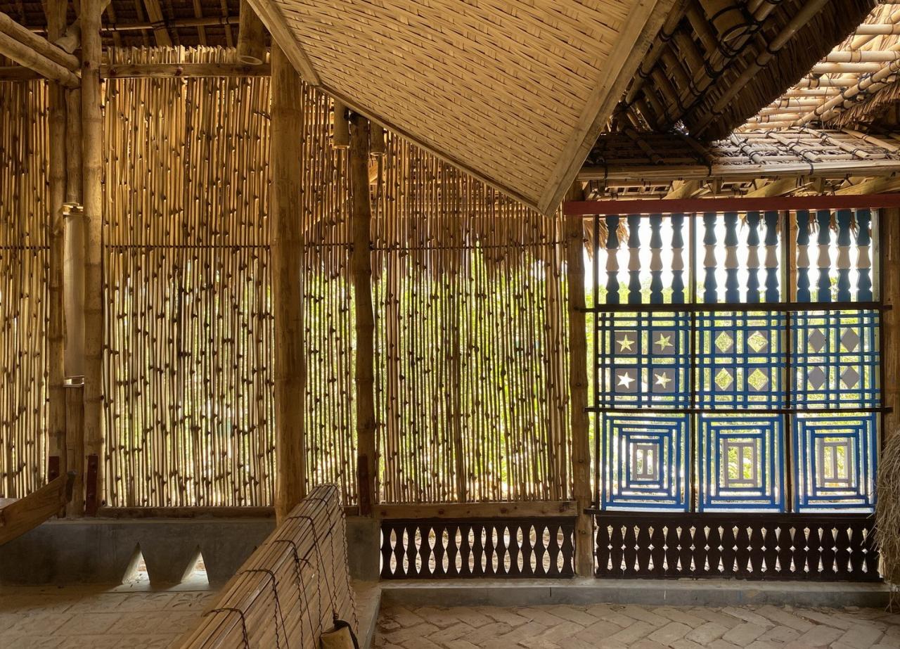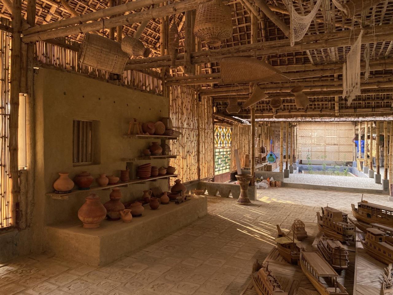 在建造过程中,拥有多年专业知识的年迈工匠向年轻一代的人们教授他们记忆中的技术,年轻的罗兴亚人则在此基础上探索新的可能性,亲手构筑文化中心的每一处空间。因此,罗兴亚文化记忆中心也是一个建立在建筑师与当地人们间的各种设计会议及实践研讨的成果。例如,建筑师希望工匠通过设计一个小窗口,以寄托他们最爱的记忆或故事。因此,文化中心中央挂有属于他们的房屋、钓鱼、大象、鸟类、稻田等各种珍贵回忆的物件,由此反映了罗兴亚人的记忆和集体感。此外,罗兴亚人在加工天然材料方面拥有丰富的技能,因此建筑师在施工过程中谨慎地选择了适当的材料,以让工匠们可以使用自己熟悉的技术。并且,建筑师与工匠在项目开始时,就已经确定用本地材料“从零开始”,并在施工过程中鼓励所有人自由地思考、讨论、一点点地手工搭建文化中心,以此保证了建筑空间的包容性及愉悦感,从而也让使用者们可以保持精神健康。