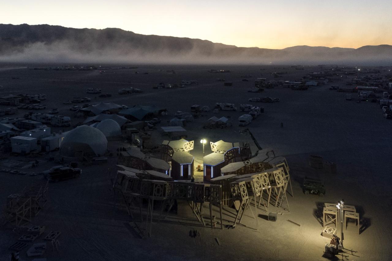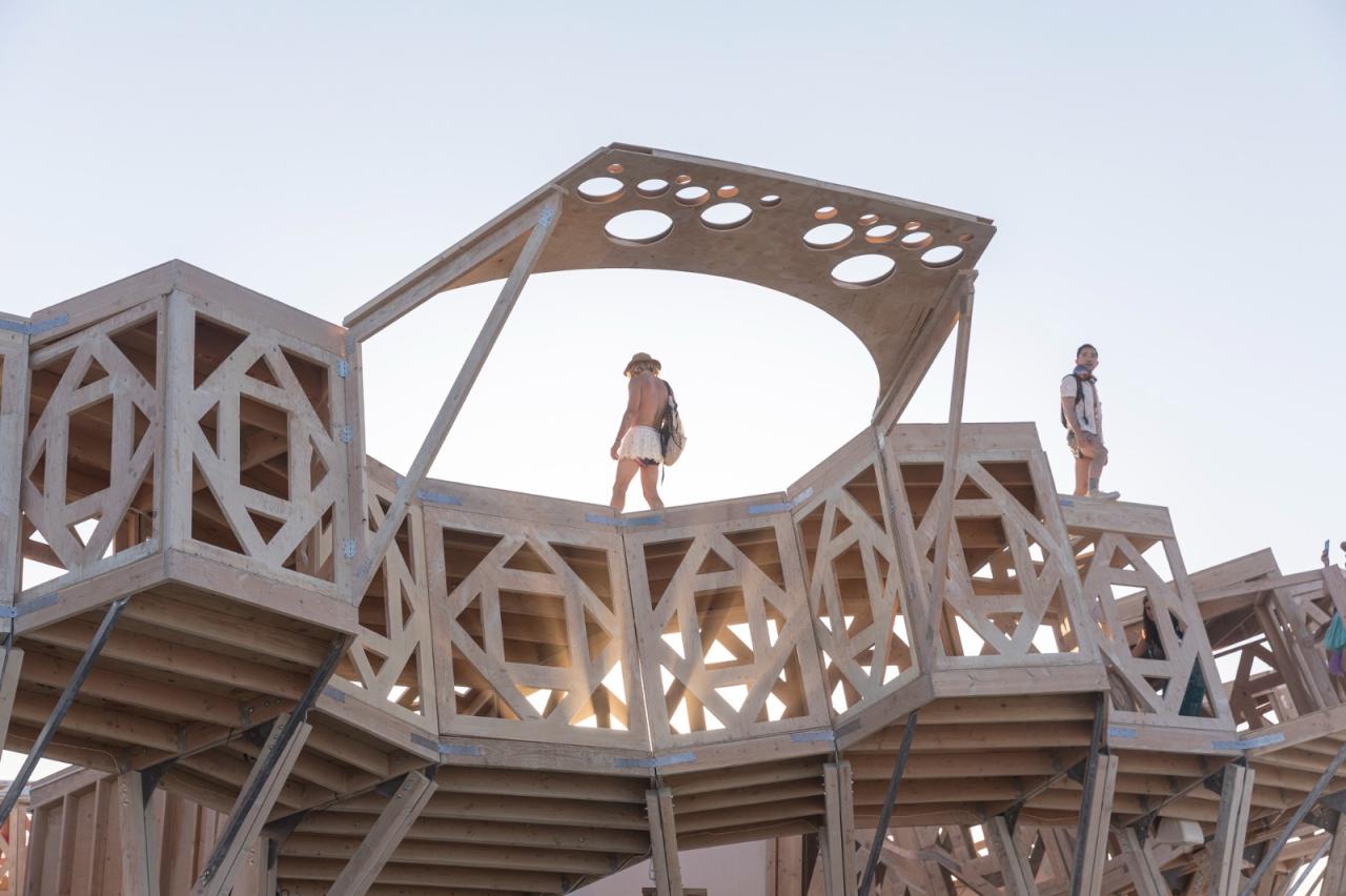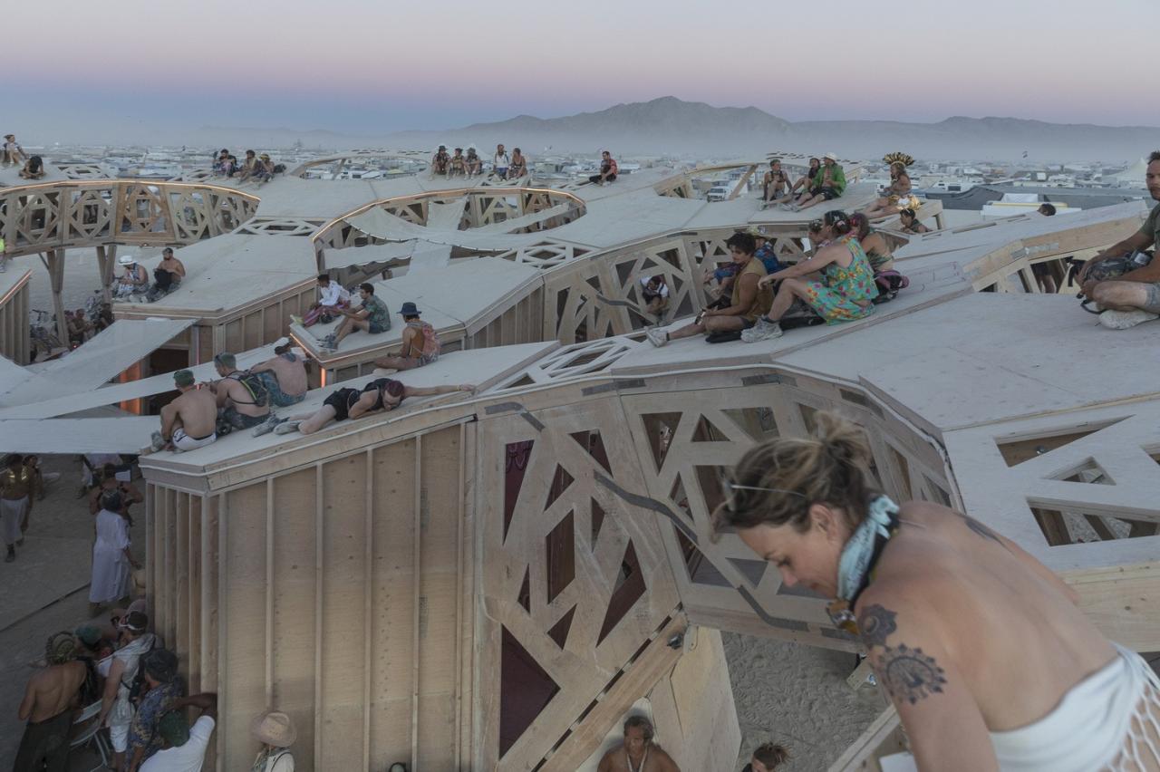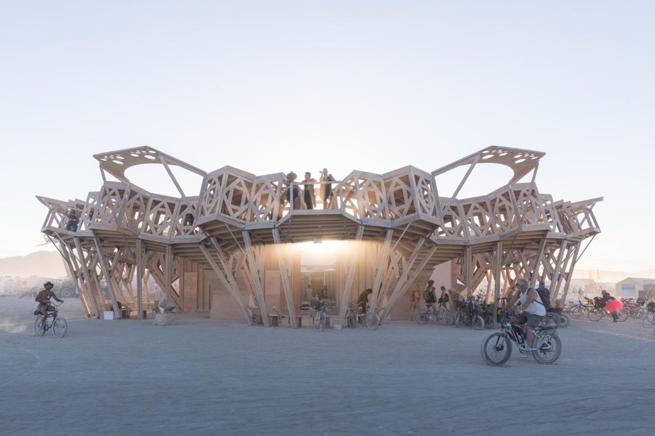 Catharsis 作为一个分形的露天剧场,为放置和表演艺术提供了无限的可能性,开放的格子体量鼓励互动和为沙漠内外的社区放置礼物。