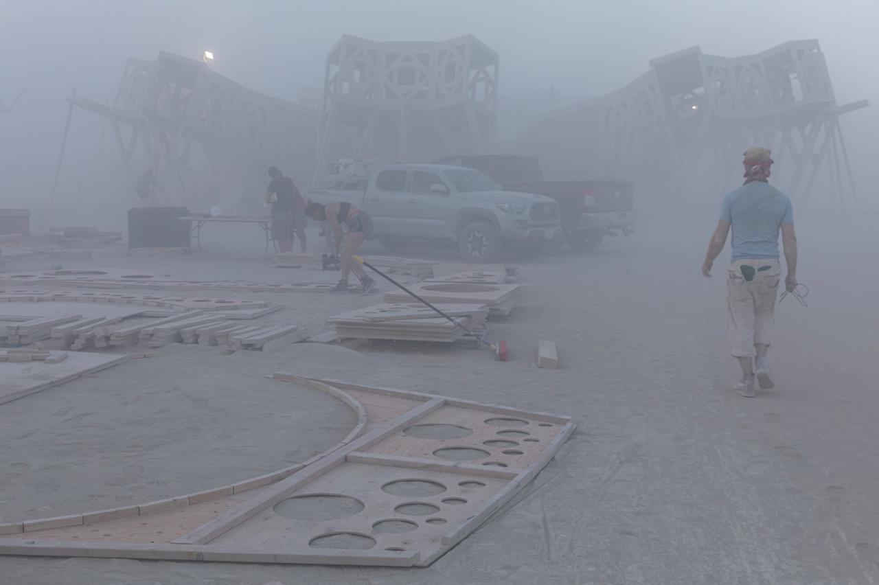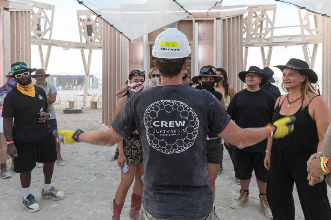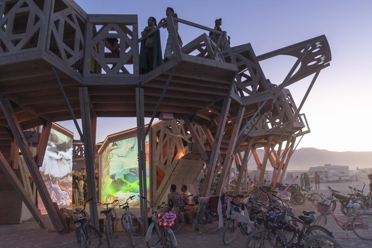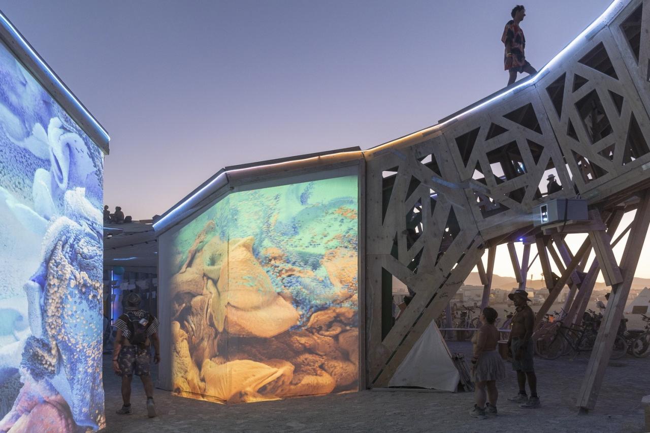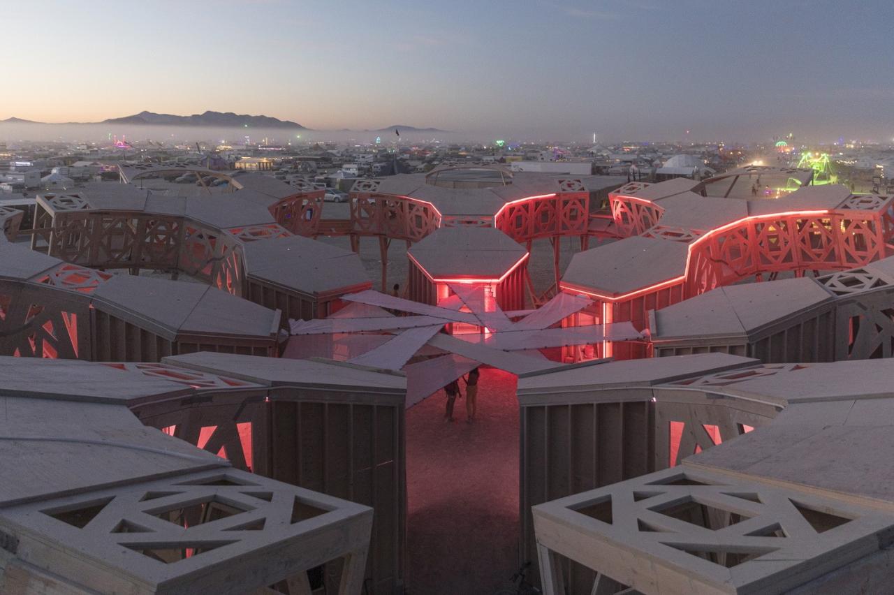 “宣泄/净化Catharsis”是一个为展现我们的无限梦境而建设的分形画廊。它承载着自由激进的包容与自我表达的精神,欢迎一切艺术和表演,它既是沙漠中的露天剧场,也是世界各地火人节游客(burners )的巡回博物馆。活动结束后,它将在其他城市重新进行组装。