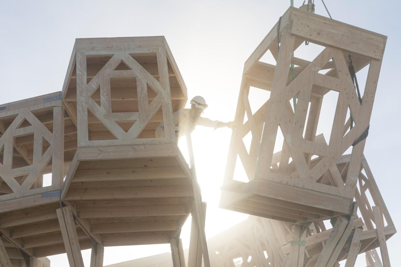 Catharsis 由共 60 个木制模块以及与工程师共同开发的金属铰链组装而成。7 重的旋转对称性将有助于减少制造和组装过程的复杂性。这些空间通过条状网以及木质结构本身连接起来,人们可以上方或里面休息和互动,下方还有可停放自行车的环绕型长椅。