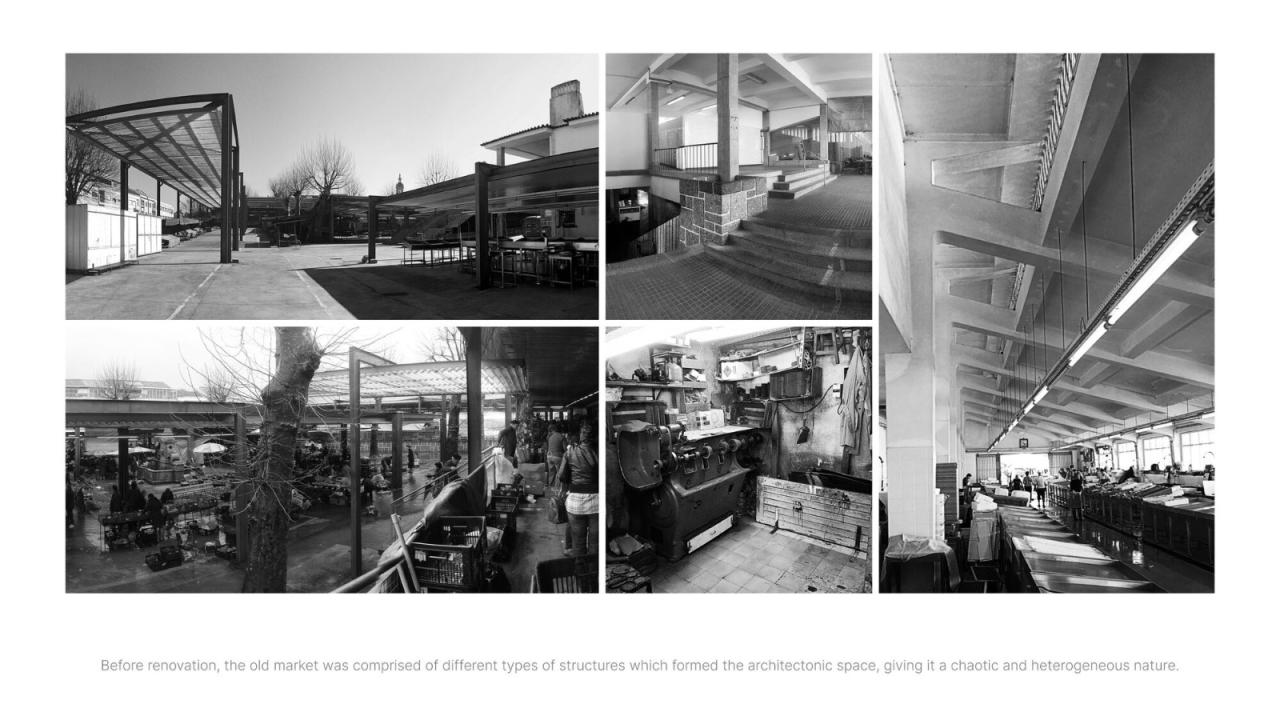 这项干预项目的主要目标是更新原有建于 1956 年的城市市场,通过增加屋顶和新的附属结构对其进行扩建,同时保留其建筑遗产特色。所有功能布局都经过重新设计,并增加新配置元素以帮助该建筑达到当今的标准要求。