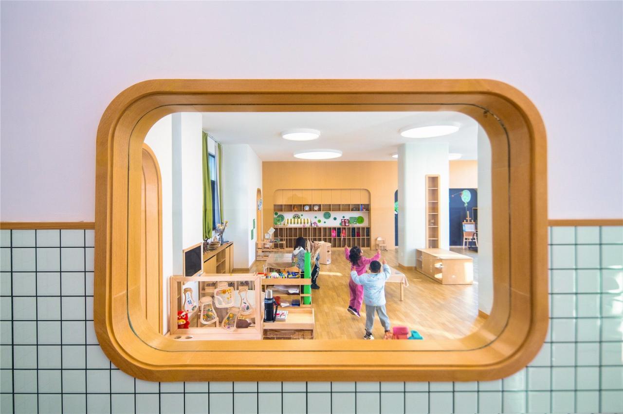 设计风格依旧延续以纯净素雅的白色、木色为主色调,以留白去承载老师们教学过程中的装点。在细节处理上,选择对幼儿友好触感的建材,家具根据各年龄层儿童的身高订制尺寸,空间内所有的电源插座与开关的设计也都定位在儿童接触不到的高度。