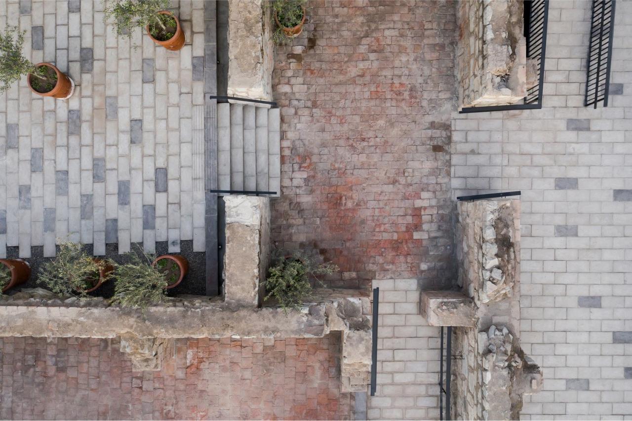与考古学家合作,所有遗留在这里的石头和砖墙都被抢救了出来。人们清理并清除了因地震和掠夺而积存的土壤,遗址的重要性和优雅性展现出来,并转化为建筑方案中的主角元素。