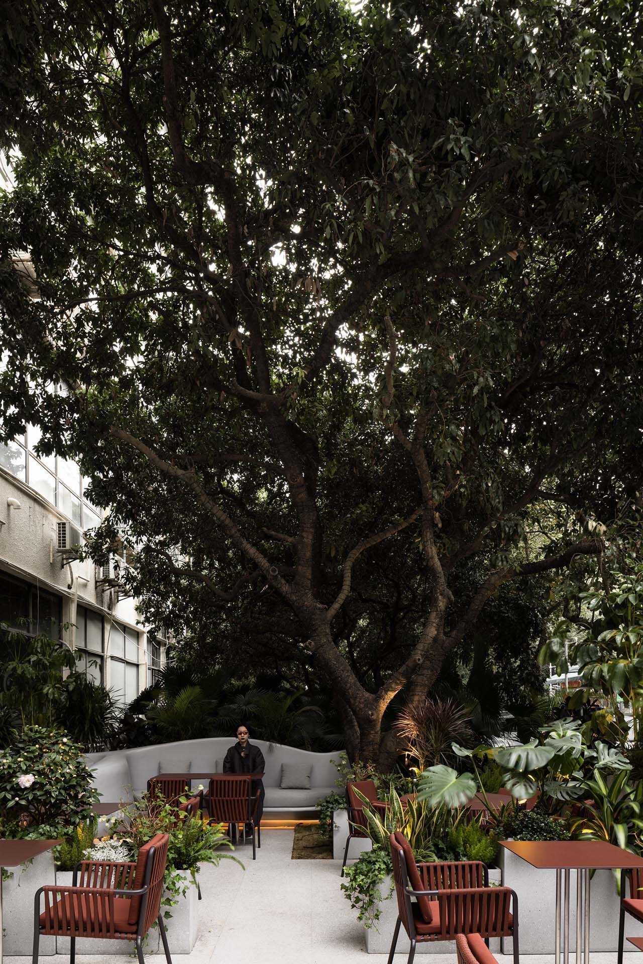 项目位于深圳华侨城创意产业园区内部。深圳是一个充满可能性的城市,创意产业园更是聚集着一个具有疯狂思维输出的群体,整个创意园笼罩着一层文艺与艺术的氛围,各式各样改造的厂房,郁郁葱葱的绿化与自然的古树,这一切都引导着我们去思考,如何制造冲击与记忆是商业引流与复购的重要手段。在文艺的空间场域制造新的压迫感,突破城市的表皮,逆向思考而获取新的结果,用激进的行为获取独异性。