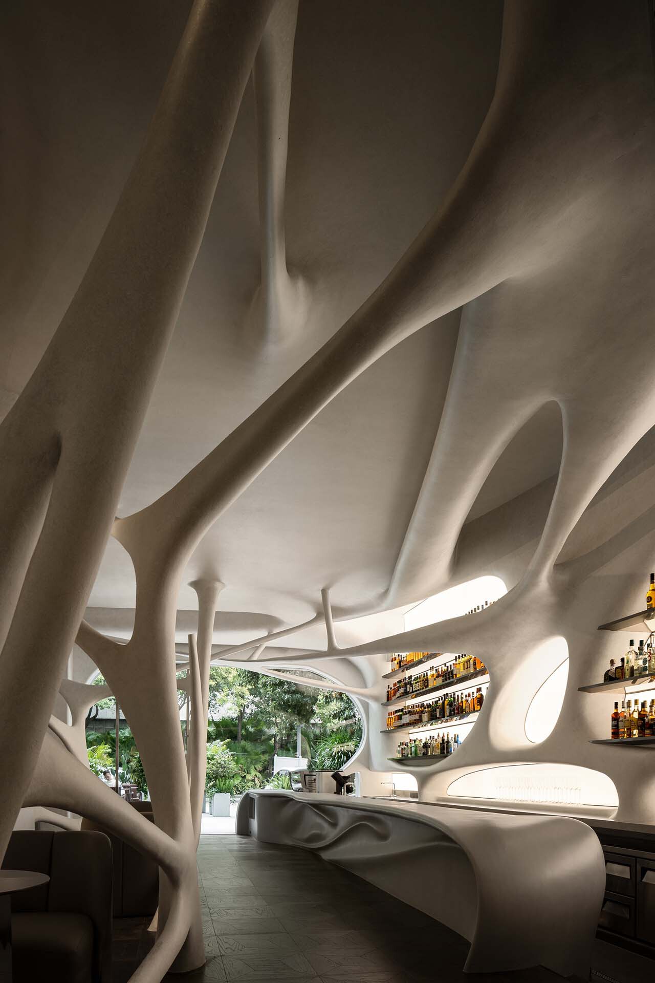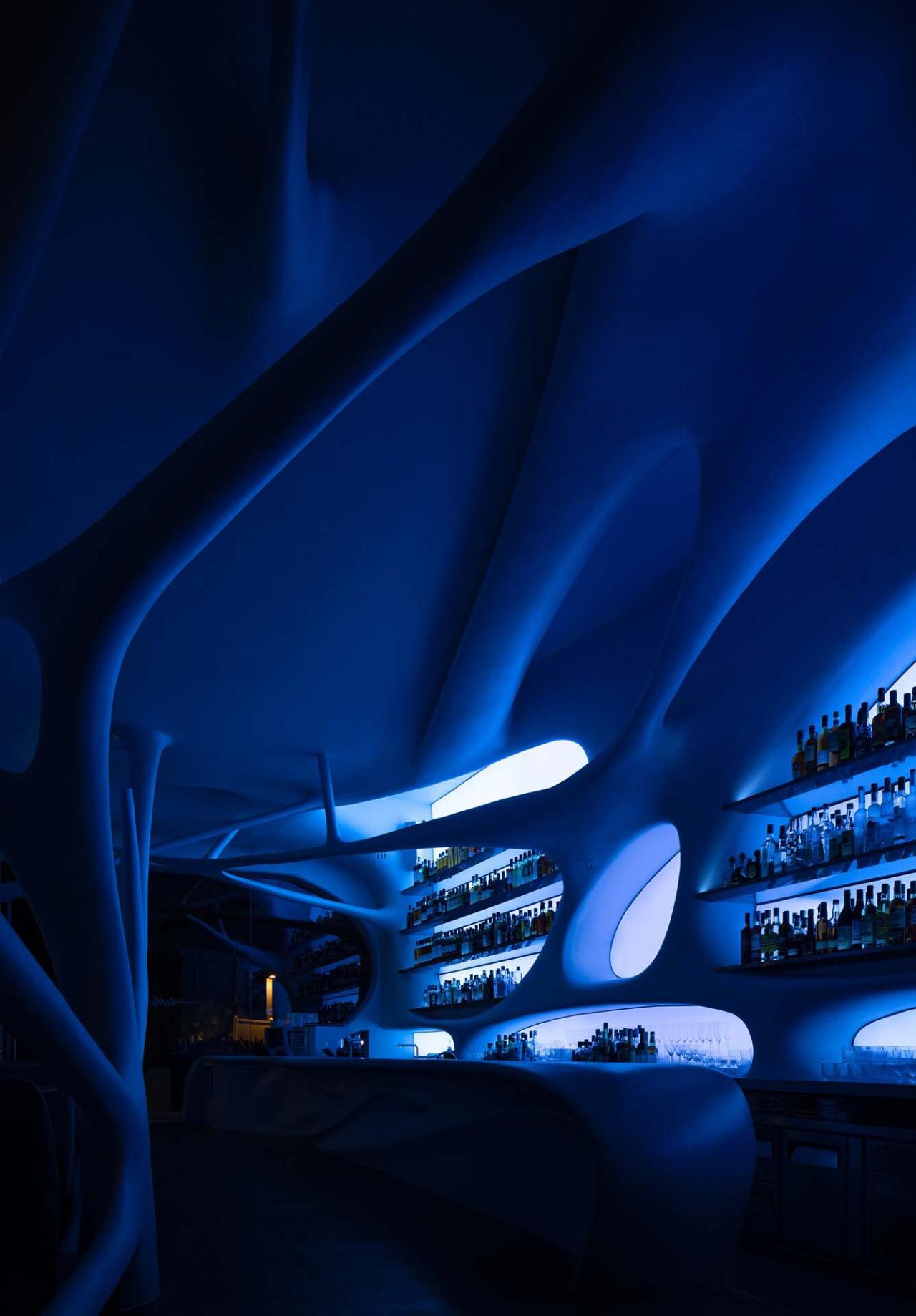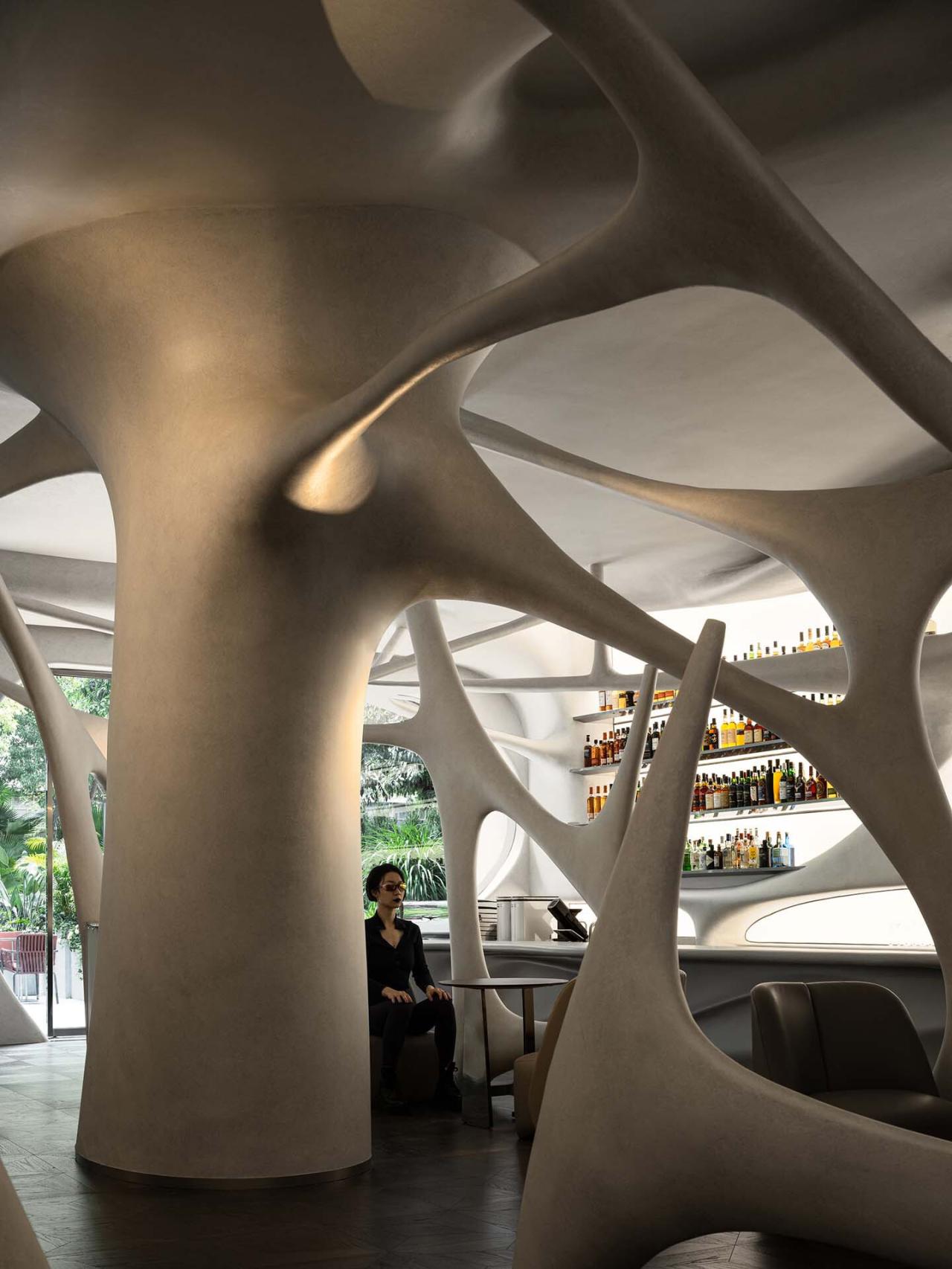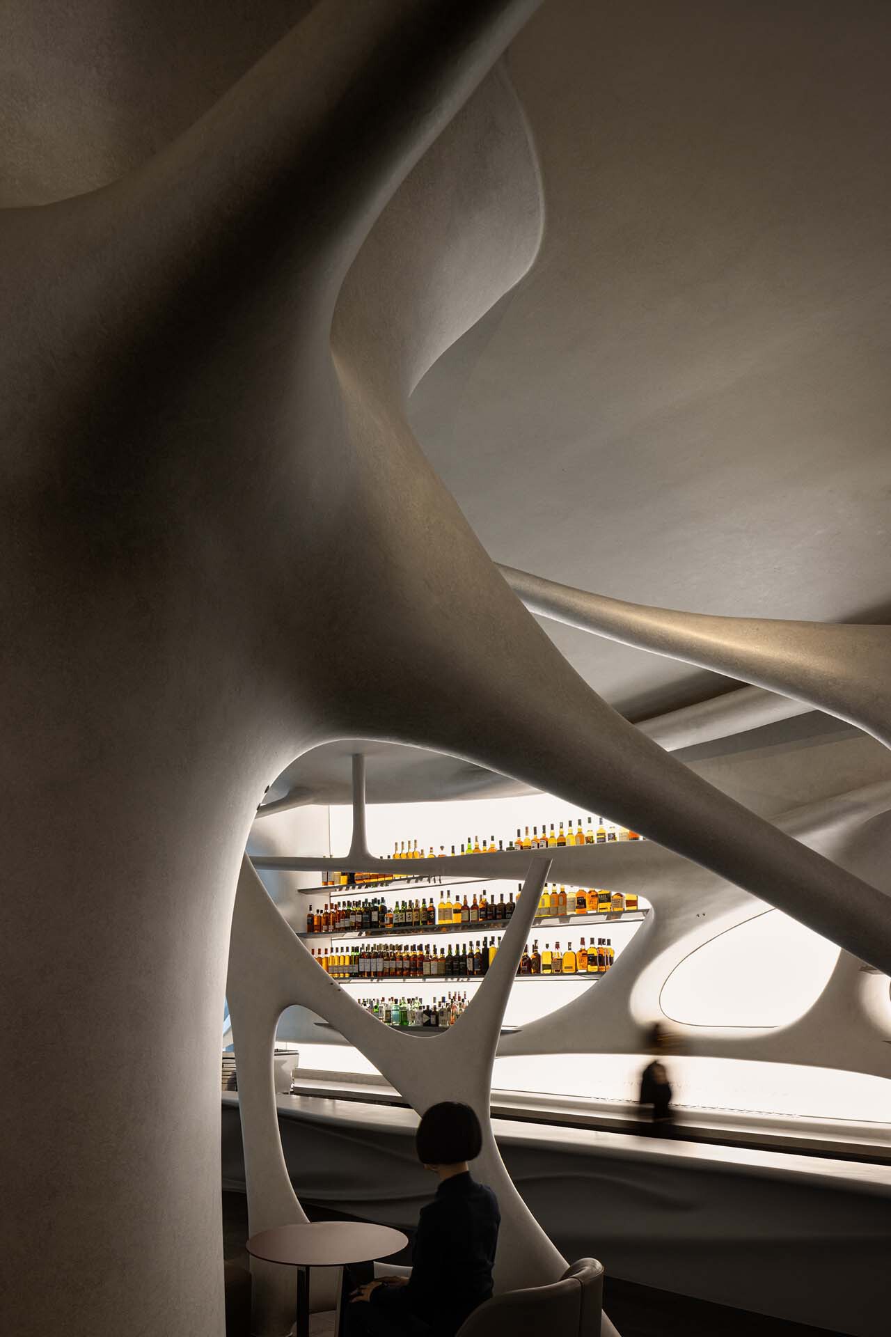 激进性|适度的躁动我们正在努力去洞察环境的基因,然后试图去破解,在城市的基因中制造分裂,重新组织新的肌理。在空间设计本身之中内部具有自由性,空间更像是未来的机器的心脏,会在不同的情景中运作起来。空间的流动感与人产生对话,形成了动态的场景组织,而空间反馈给人的这种意念也是空间记忆的一部分,它可以是洞穴,太空舱,神经元等等,但这一切都离不开白天咖啡的一种适度与晚上威士忌轻微躁动的切换。