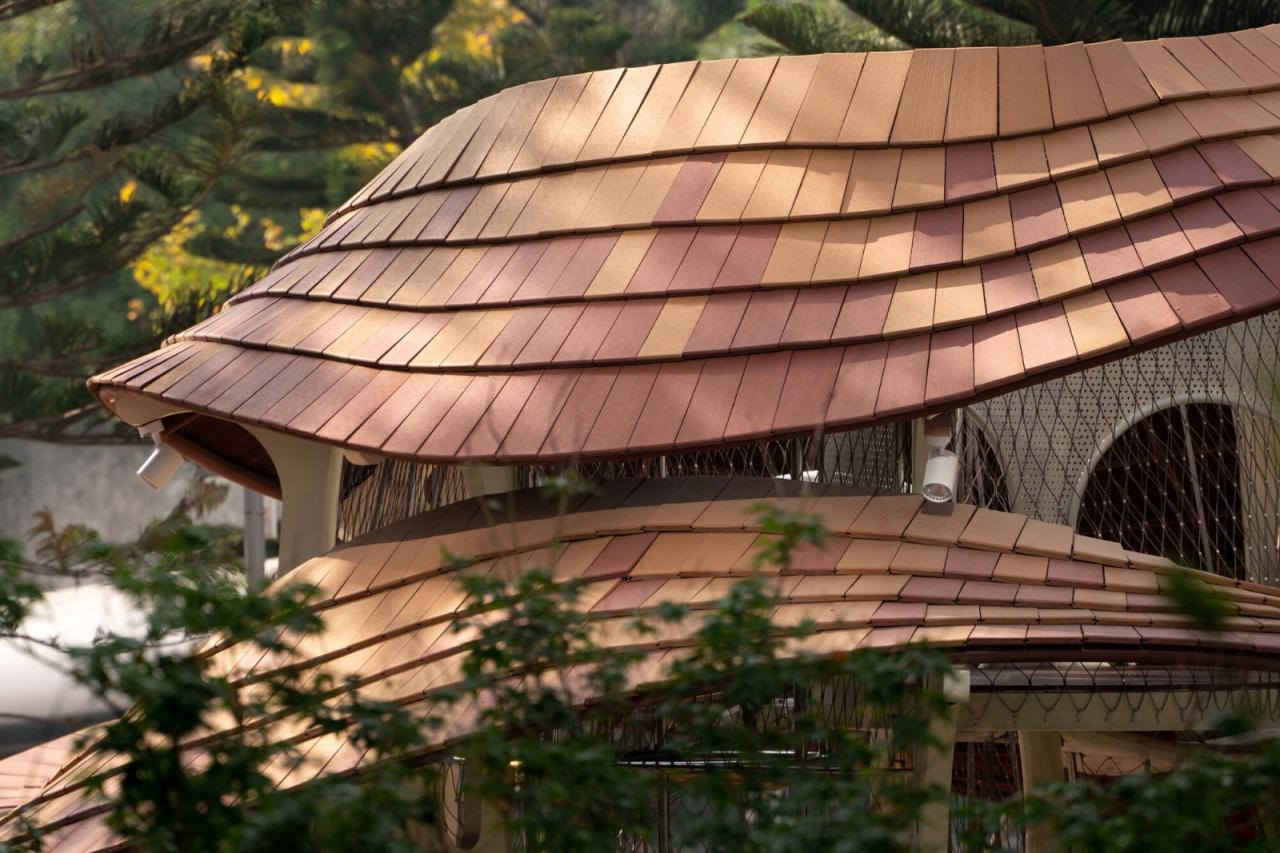 太空部落三层木瓦顶的结构设计,参考了Ameba渐进式优化算法模拟的受力分析。倘若每层顶各有立柱垂落,会过多侵占内部空间面积,造成使用不便。但若极致地追求单柱解决支撑问题,则对材料的悬挑强度有过高要求,造成成本抬升与材料浪费。因而最终选用了支撑体系简化程度适中,分区域支撑合理的最优方案。
