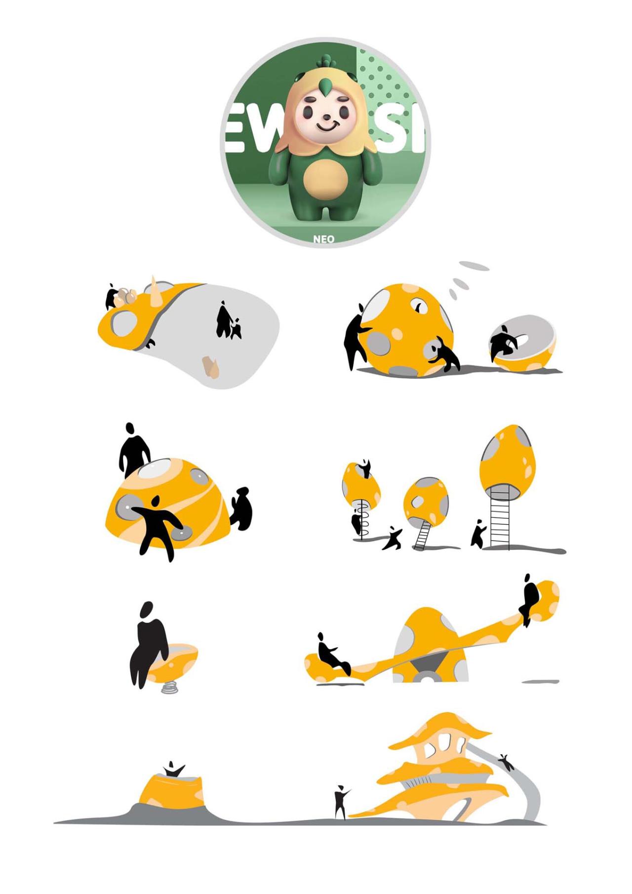 D10丛林星球儿童场地,将儿童装置与空间地形穿插结合,用景观建筑的设计思维使之一体共生,弱化了人工设施在视线当中的比重,兼顾了高楼俯瞰和漫步其中的全龄使用者们,亲近自然的天性倾向。对我们来说,它是一次极富挑战性的探索,一个充满趣味的开始。