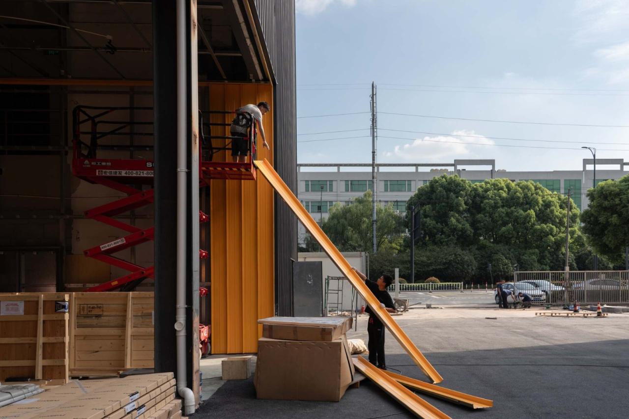 规则中的不规则厂区总建筑面积约1.7万㎡,原本的四幢建筑因功能划分为了展厅、办公室和仓库。改造过程中,say保留了原建筑的主体结构,将重心放在了新立面系统的构建,在原有尺度上进行的材质的覆盖也暗示着建筑在时间维度上的延续。
