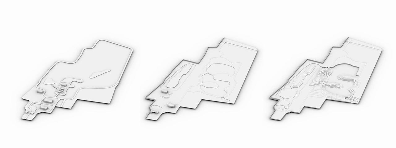 庭 – 游客中心 对多进庭院的重构游客中心位于公园北部,与上方寺路一河相隔,毗邻公园的北门入口,游客中心以“单路多进庭院”为原型进行重构,希望通过建筑化的院落序列来延续园外市井喧嚣与园内安静氛围的过渡。不同廊道随着庭院的高低起伏在各个房屋之间游走,立体的廊道提供了山水图式的观游体验。不同廊道之间转折迂回,与屋面上下交叠,丰富了庭院层次,使得城市与园林之间得以有机融合。