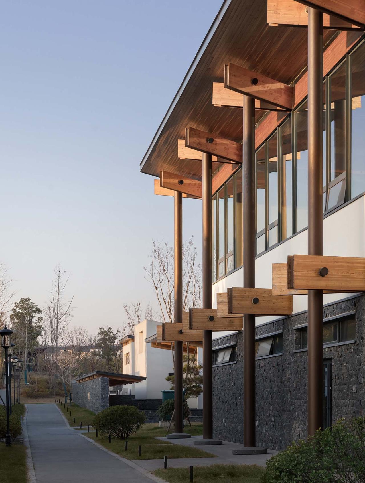 建筑:新营造我们把此次设计任务看作是对“竹西佳境”在时间轴上的延续,五处新营造建筑散布园中,提出以重构(re-construction)的方式对传统建筑语汇做出回应。我们选取了传统建筑由宏入微的五种“空间原型”:分别对应“院、馆、厅、舍、庭”来营造。