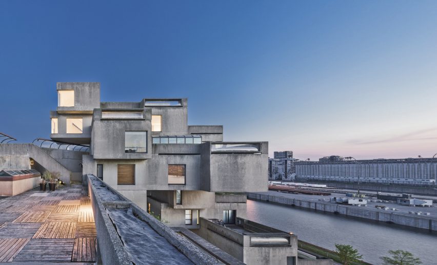 当萨夫迪被邀请提交他的创意设计供考虑时,他才23岁。当时,他师从著名的美国建筑师路易斯-卡恩(Louis Kahn)。这座建筑被广泛描述为野蛮主义建筑,萨夫迪拒绝使用这个形容词,它由354个预制的不规则堆放的混凝土盒子组成。花园和露台交织在一起。直到20世纪80年代,政府一直拥有这座建筑,后来它被卖给了一个私人开发商,然后又卖给了一批租户。最初,这座大楼共有158套公寓,但多年来,公寓被合并,数量减少到146套。