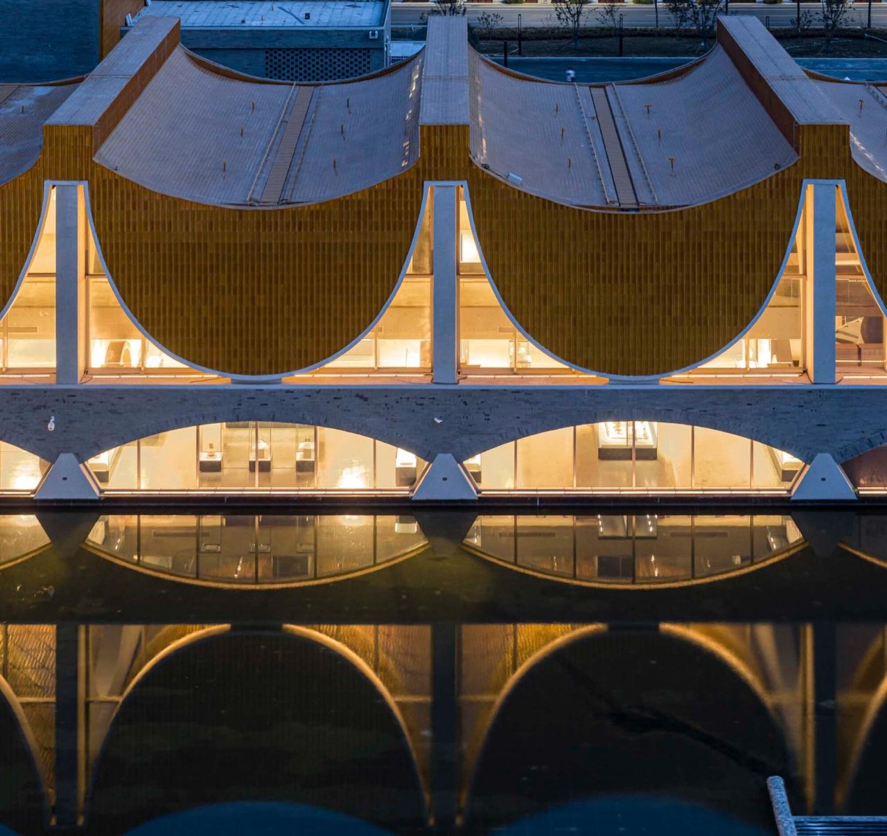 建筑风格方面,博物馆所在的隋唐大运河国家文化公园正处于隋唐洛阳城遗址的范围,周边规划了大量的仿唐风格景观建筑。按惯常思路,这座运河博物馆必是唐风建筑无疑。我们的设计试图跳脱出仿唐风格的包围和束缚,寻找对隋唐历史文化的不同切入视角。