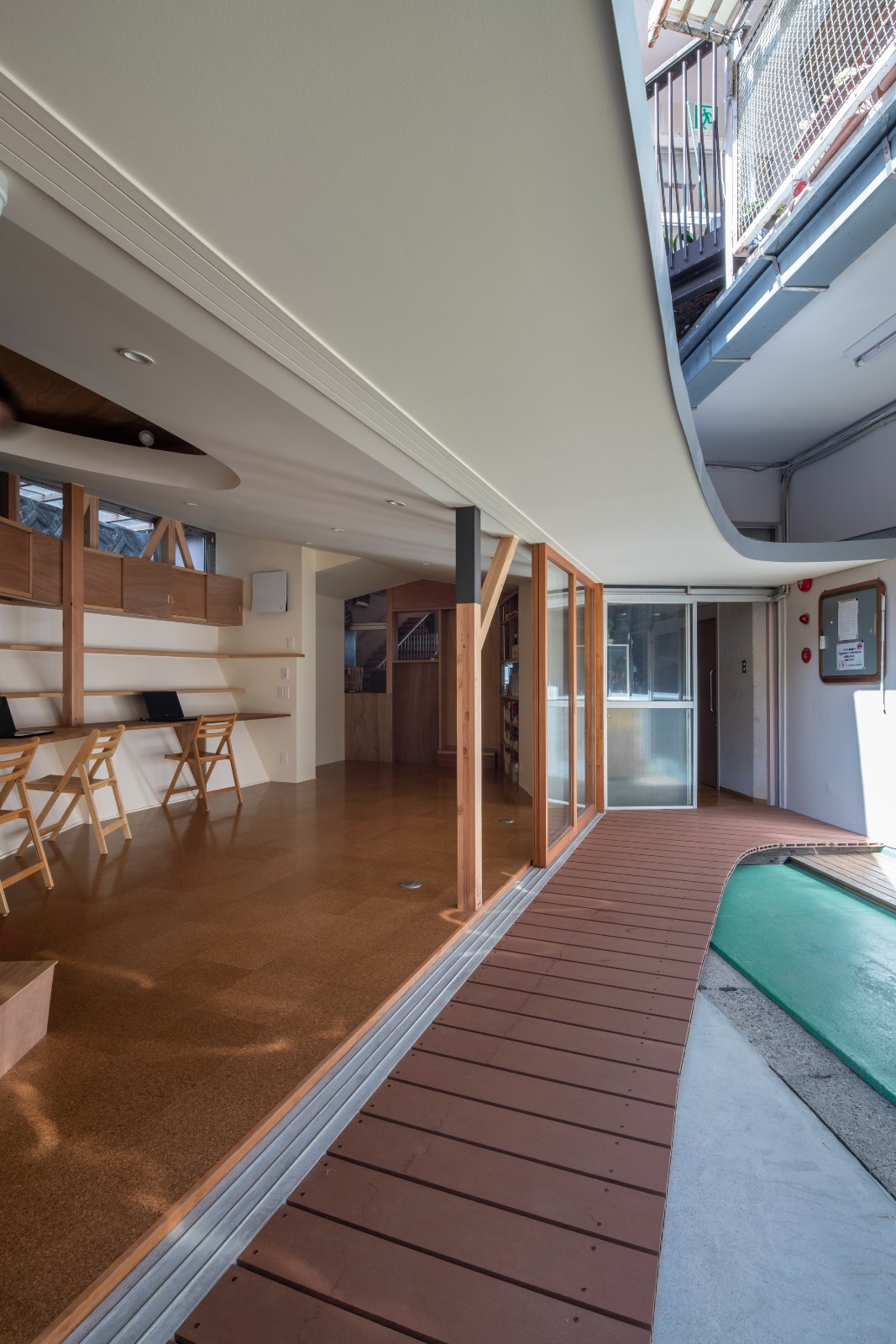 地面上不再有建筑物的轮廓。最内的空间因此成为室内,并与现有建筑相连,面向操场开放。