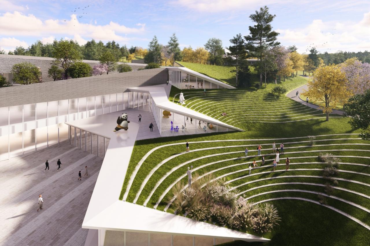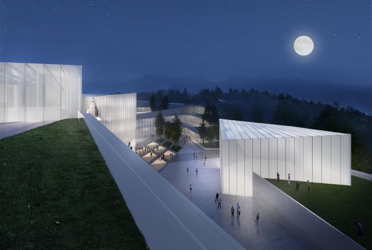 设计尊重现有自然地形,屋顶自然步道延伸公园体验。亲切日常自然融合的设计,淡化生活与文化艺术的边界。公园延伸到充满活力的山谷,一系列屋顶步道引导着游客游览丰富的景观,结合自然步道、天空农场、星空营地、日落剧院,活跃文化森林又拥抱自然多样性。