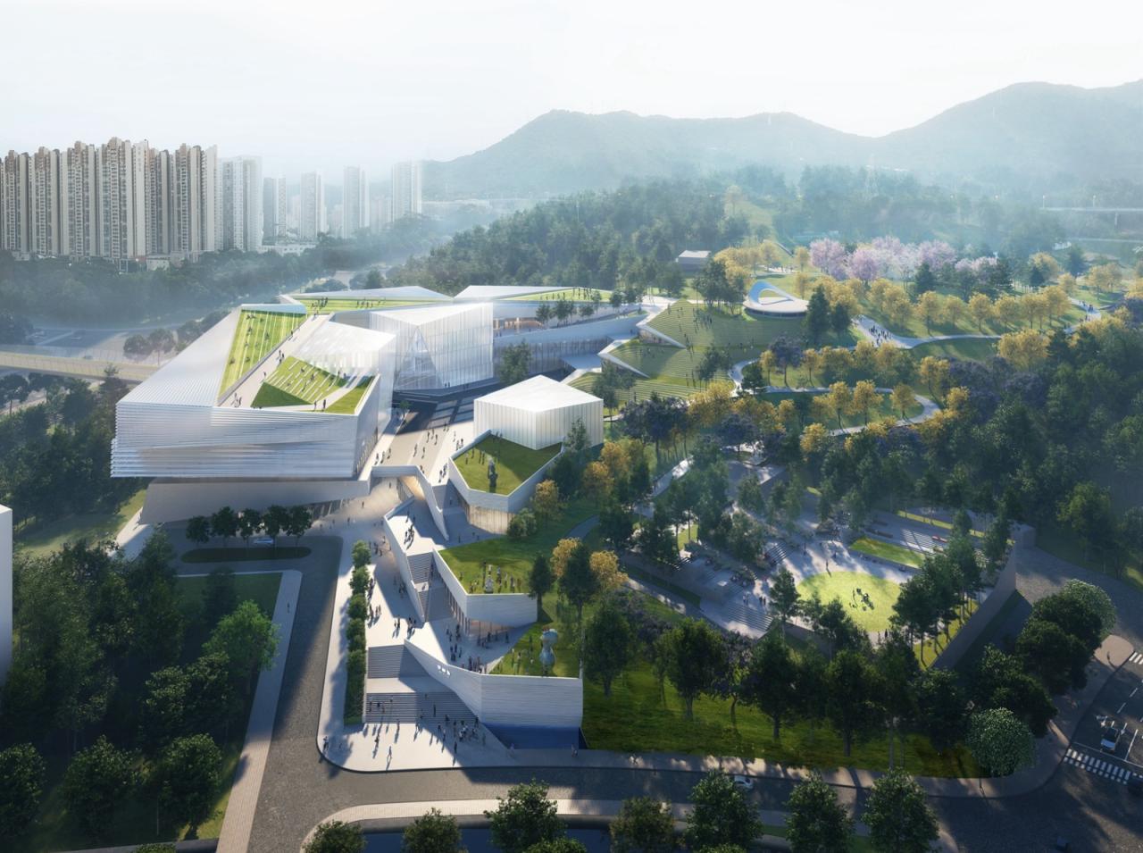 深圳因“建筑艺术审美”和“艺术强市”逐渐被世界看见。围绕塘朗山,深圳正在打造将城市与自然相融合的一系列世界级文化基础设施。“龙华两心一馆”的建成,为城市文化产业升级创造新地标,是未来高品质的世界级文化目的地。