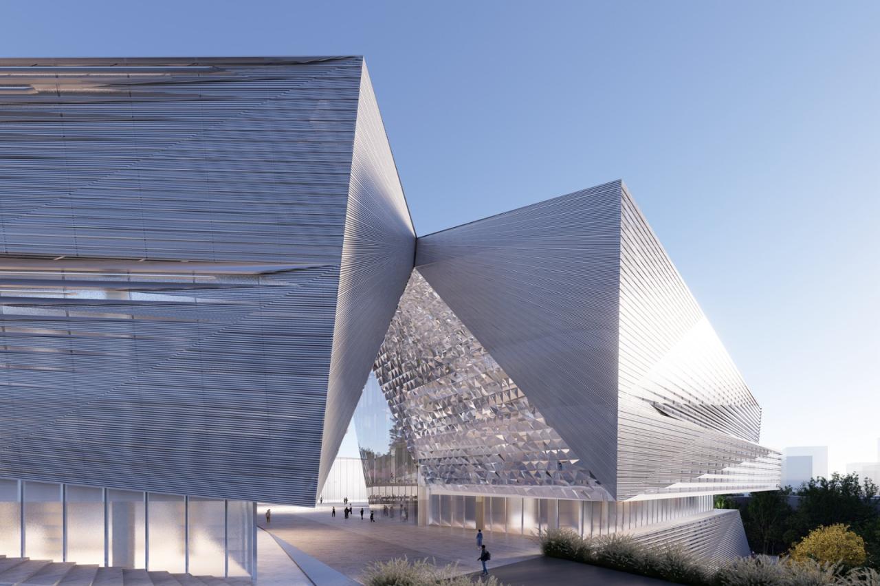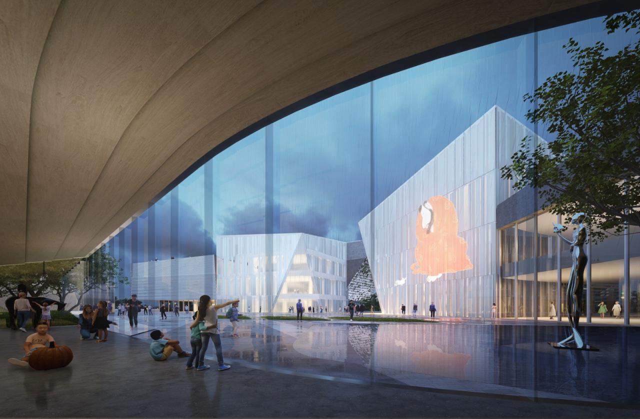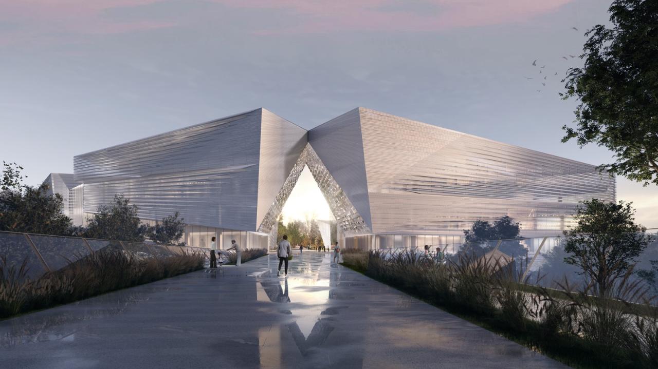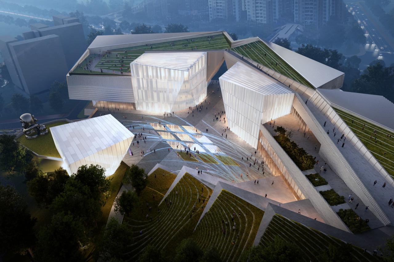 设计内容包含音乐艺术中心、动漫美术馆、妇女儿童中心。AG汇创从多年城市文化建筑研究及实践出发,以“谷中艺心,三晶之丘”多维诠释项目,将三大核心建筑聚构为探索自然与建筑艺术的“三座文化晶石”,呼应文脉、连接城市、聚构艺术、营造活力,是一个生态与文化艺术共生长、打造沉浸体验,从真正意义上实现全龄化参与,带动城市生命力的当代文化艺术中心。