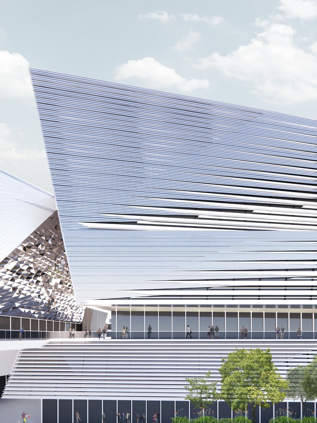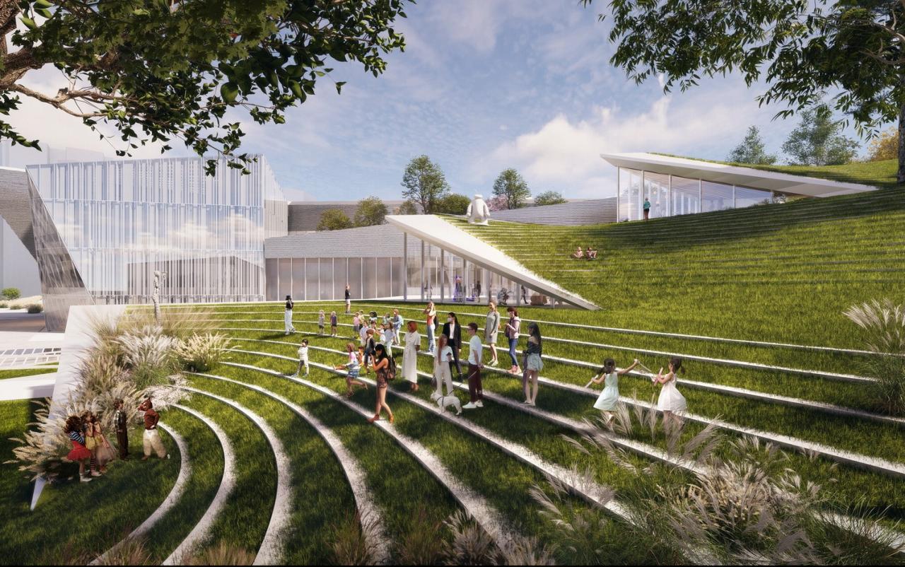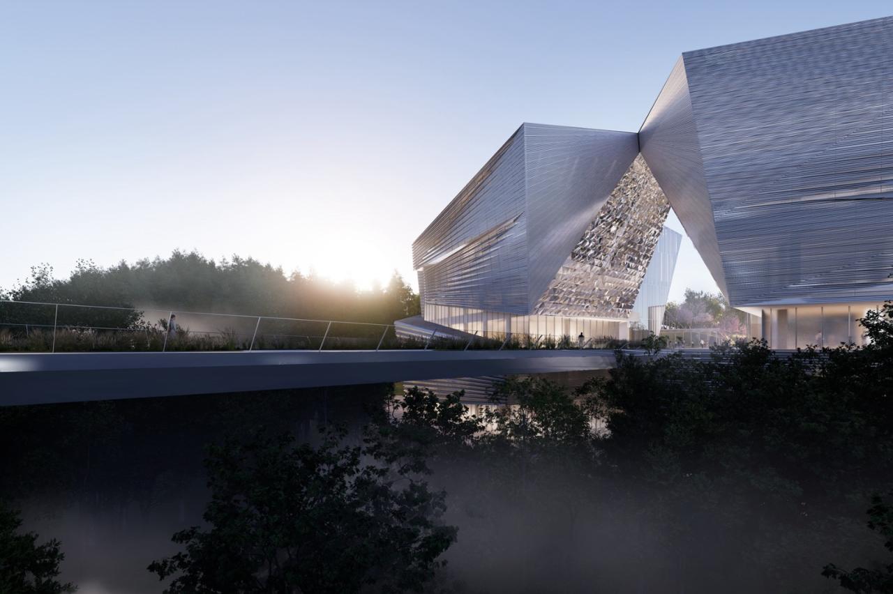 设计内容包含音乐艺术中心、动漫美术馆、妇女儿童中心。AG汇创从多年城市文化建筑研究及实践出发,以“谷中艺心,三晶之丘”多维诠释项目,将三大核心建筑聚构为探索自然与建筑艺术的“三座文化晶石”,呼应文脉、连接城市、聚构艺术、营造活力,是一个生态与文化艺术共生长、打造沉浸体验,从真正意义上实现全龄化参与,带动城市生命力的当代文化艺术中心。