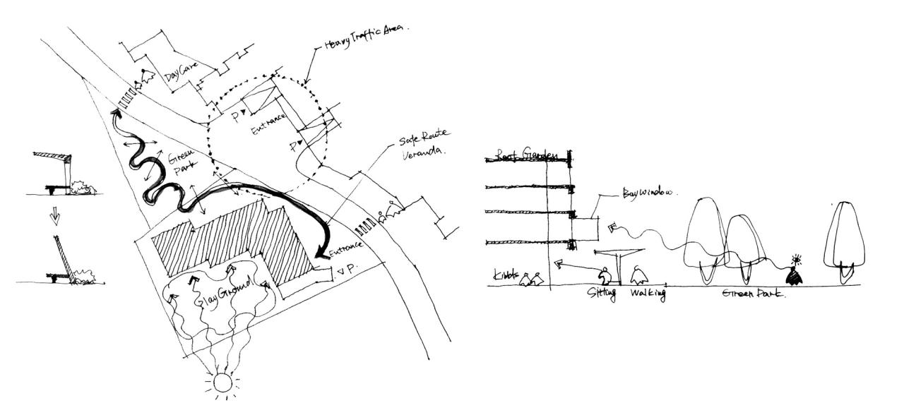 △ 三里亭幼儿园围墙内外空间(中标方案) ©goa大象设计