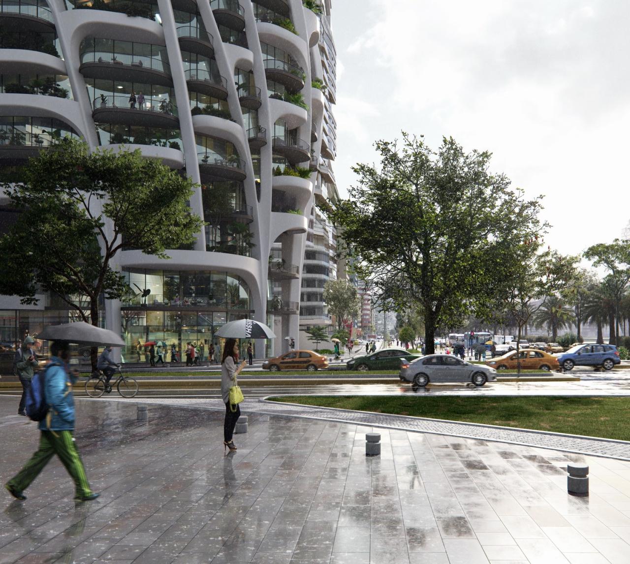 Qondesa高142米,共36层,1-7层设有商业和办公空间,7层之上则为市民提供271户不同规格、布局紧凑的住宅单元。有机的轮廓和灵动的造型,将自然充分融入高密度的垂直社区。