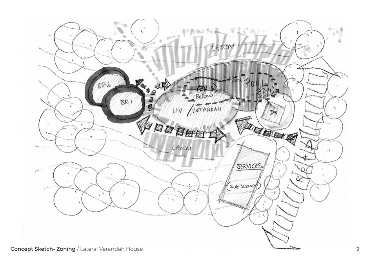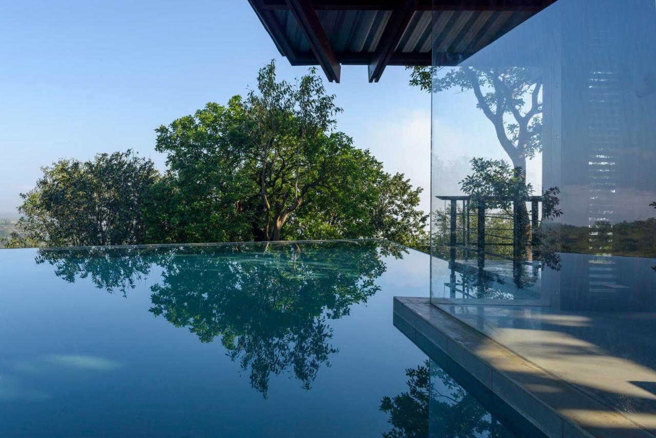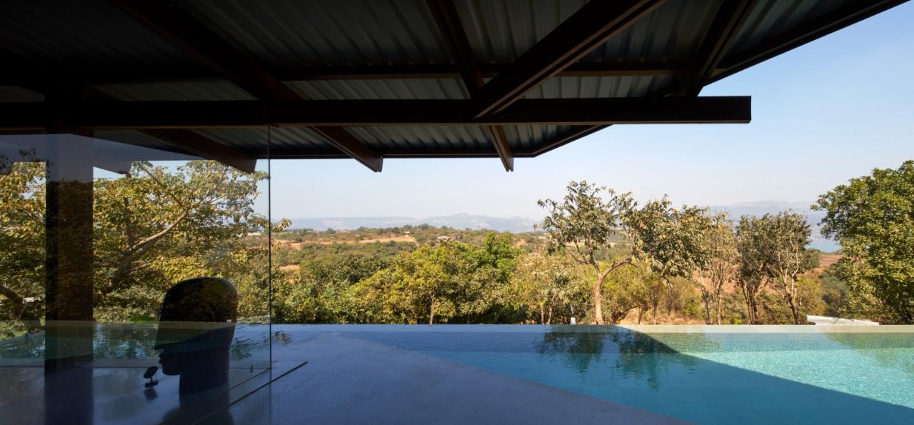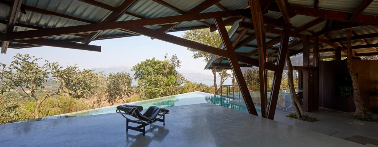 这所房子位于这片陡峭且树木茂密的地形的低处,纵横交错的沟壑将我们引向住宅。三溪之屋置于场地边界外、坡度相对较低低之处。“地点”是项目主要元素:东面有Tung Fort山丘堡垒;地貌特殊;森林茂密,气候独特,特别是北/东面坐落的大型 Pawna水坝以及南/西南部的低洼丘陵造成的风流。伴随着凶猛而美丽的季风,雨水倾斜而下。