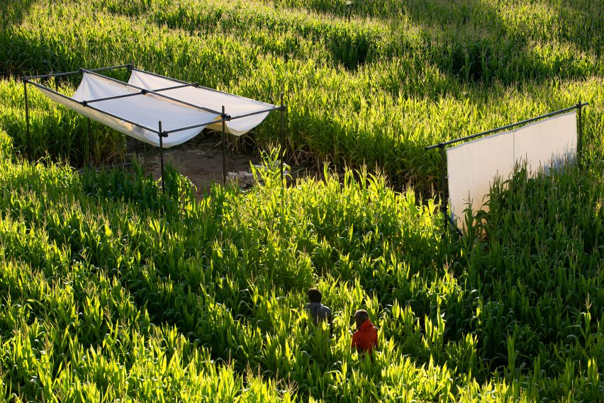 希德建筑工作室(Shid Architects)在伊朗科梅尔村(Komehr,)创建了一个简陋的生态小屋,其特色是在玉米地里搭建了一个观景台、聚集空间和睡眠区。