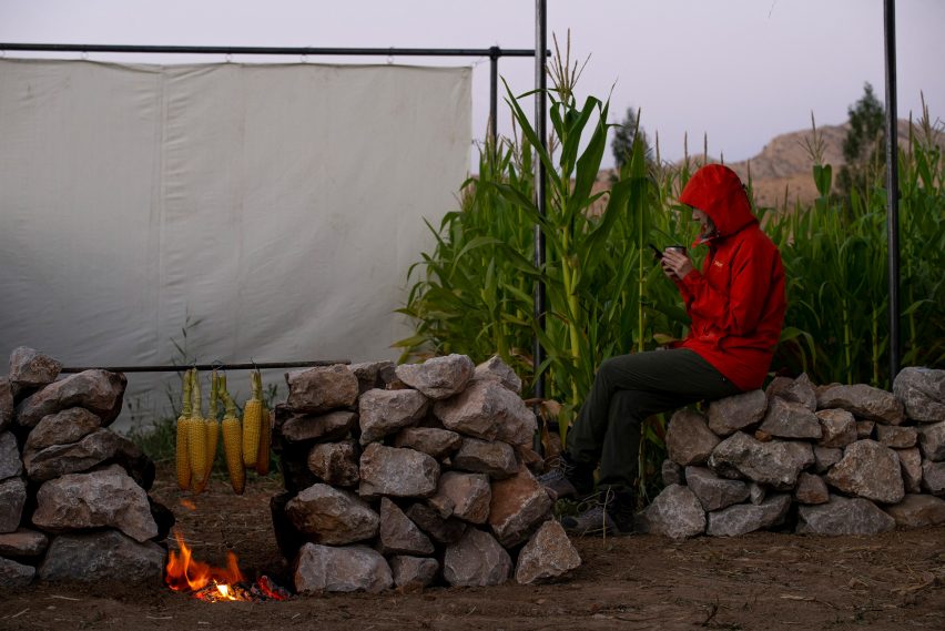 为了保留占据大片土地的玉米地,工作室利用迷宫的概念在一些休闲空间之间建立了联系。穿过玉米行的小路提供了通往各种编程空间的通道,其中包括一个带火坑的简单集合空间和一个放映电影的屏幕。