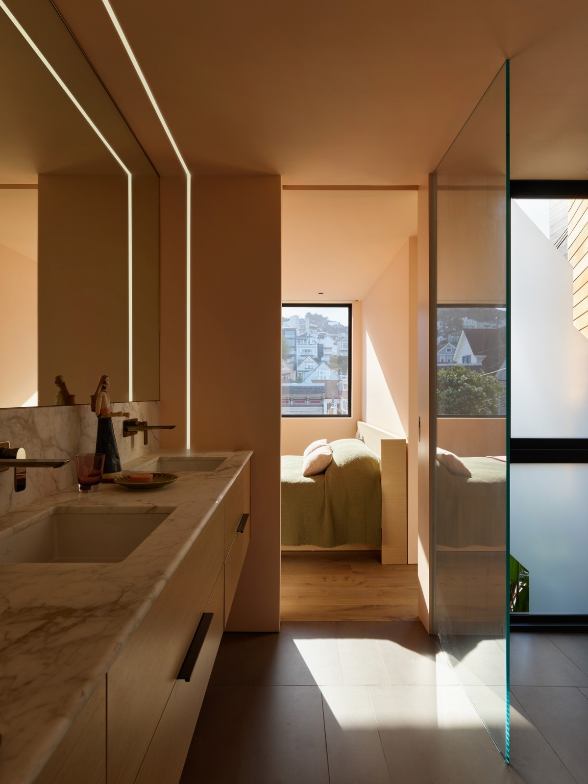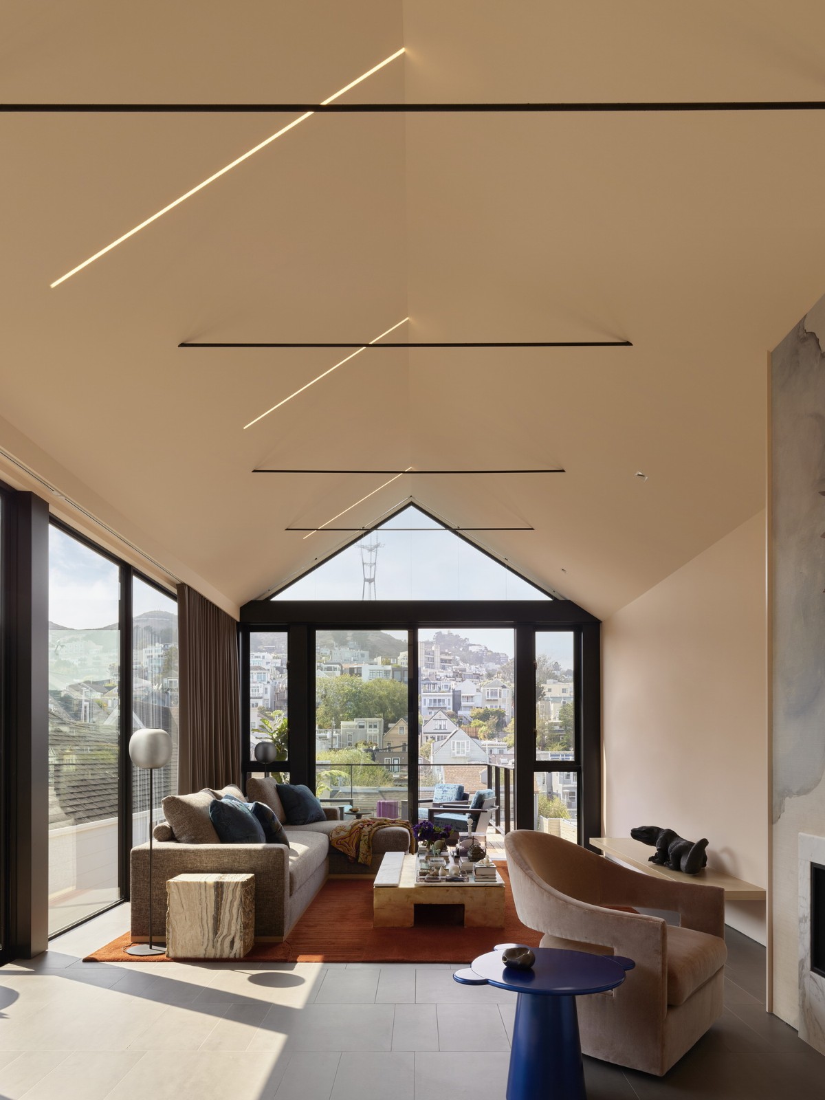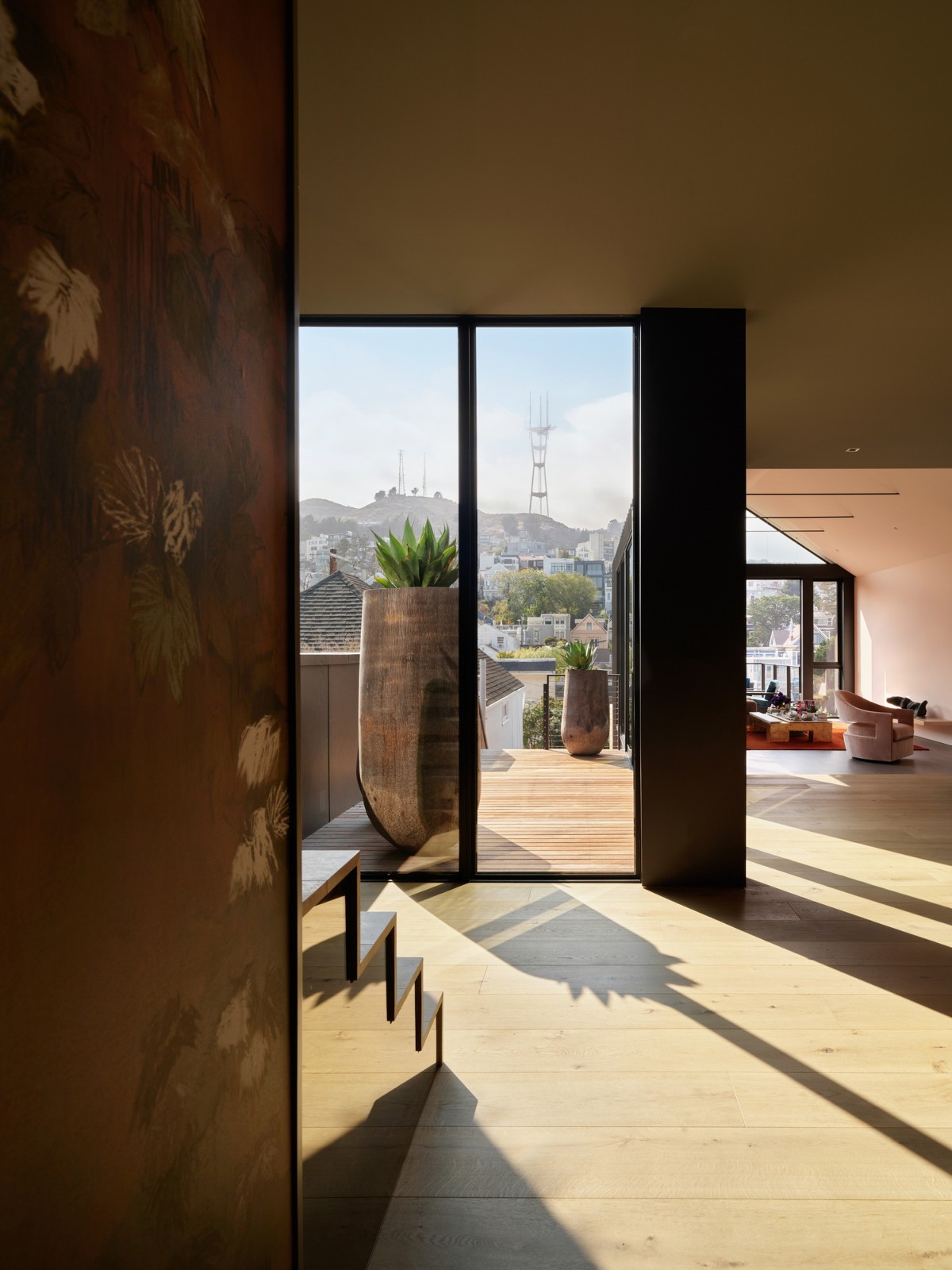 坐落在旧金山多洛雷斯高地附近,向西倾斜的场地提供了城市和附近苏特罗塔(Sytro tower)的全景。该住宅是与 Sawyers Design 的 Kevin Sawyers 合作设计的,他也是该住宅的部分所有者。