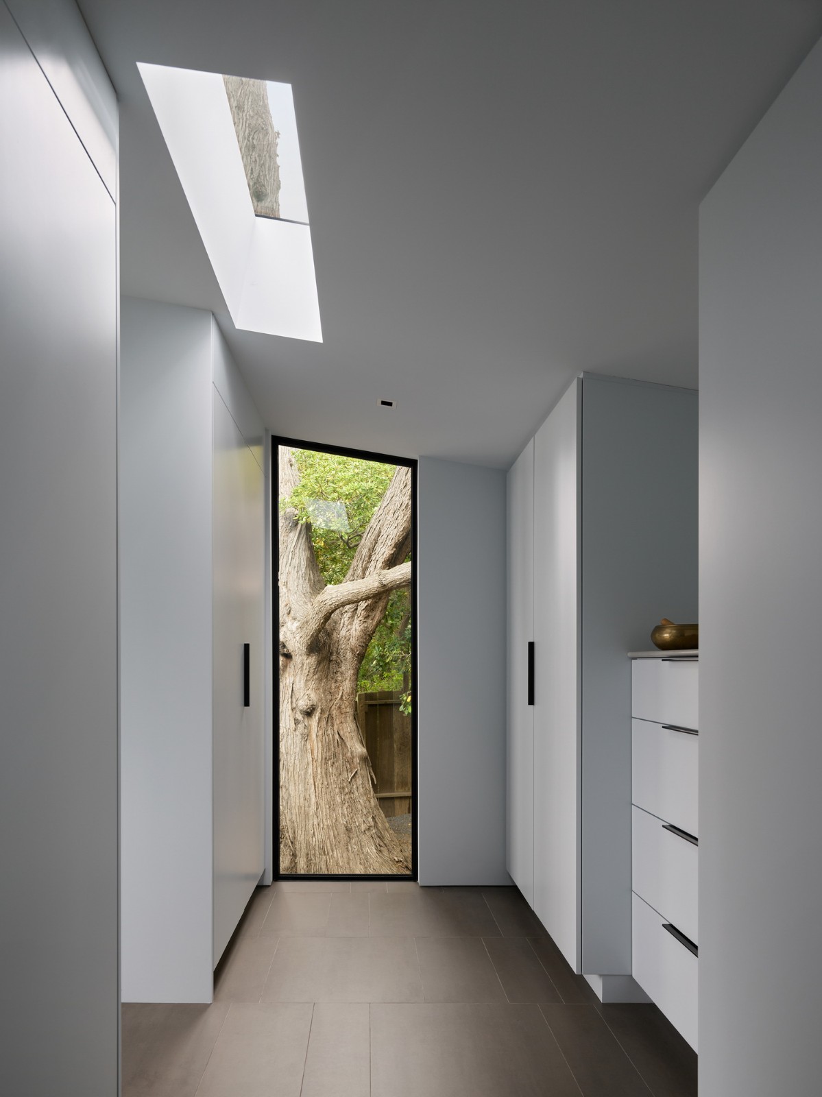 场地与住宅的循环是一条直轴,当它们上升到主入口时与建筑的形式相互作用。内部延续,沿着这条轴线的体验总是固定在苏特罗塔的下坡端,在上坡端由一棵宏伟的蒙特雷柏树结束。