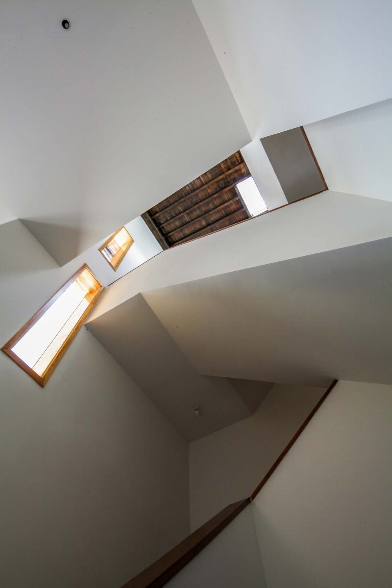 藏族民居建筑中佛堂为空间布局的中心,以此来呈现佛堂是藏族人心中的精神寄所的重要地位。嘎玛溪卡建筑中与二楼露台连接的空间被设计成为一个现代感的佛堂,是整个建筑空间的几何中心。在藏族传统文化中,楼梯具有非常重要的精神含义,楼梯越陡说明快速通往天界的意义就越浓厚,对于修持者而言,一步登天当然是最好。将楼梯修得尽可能陡,便于尽快通天,尽快步入净土。建筑内部每层都设置了公共空间,并且可以直接与户外露台连接,形成内部与外部双交通系统。内部交通楼梯强调功能性与便捷性,外部交通突出体验性与交互感,塑造一种可以被游历的建筑立面体验。这种双交通的空间系统为远道而来的游客创造了更多见面与驻足交谈的机会,也成为闲暇时间村民休闲的开放场所。