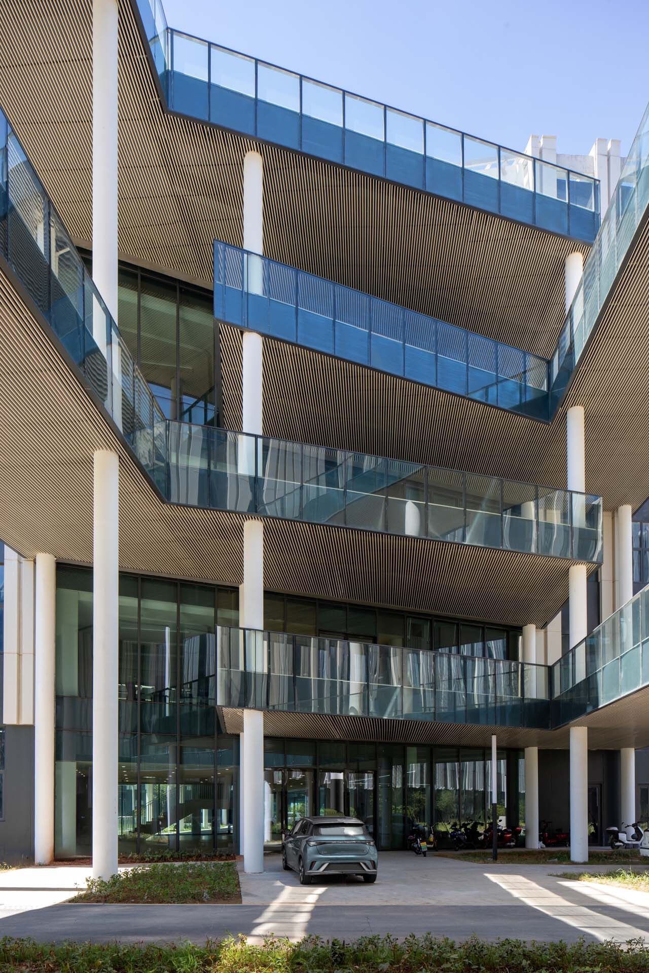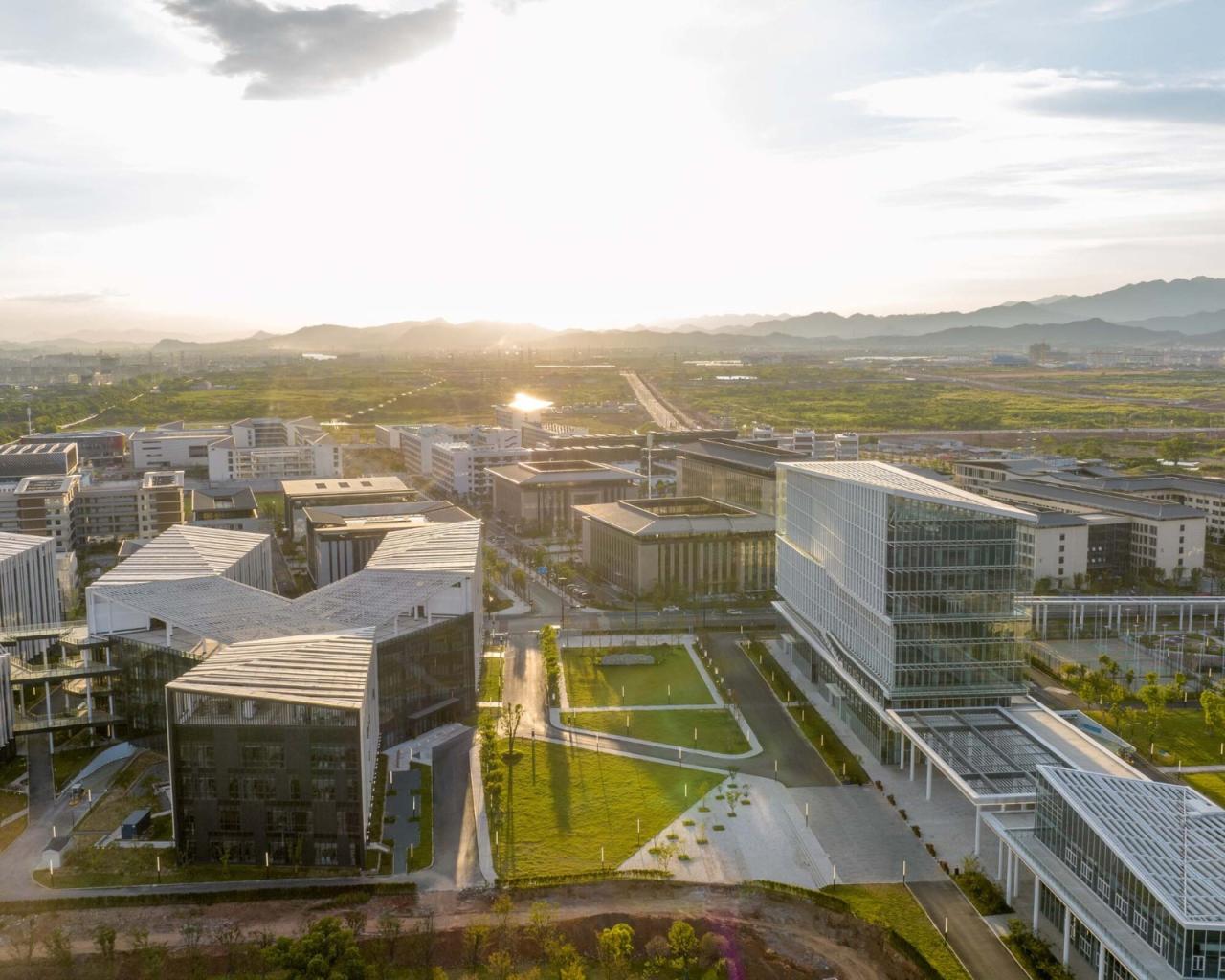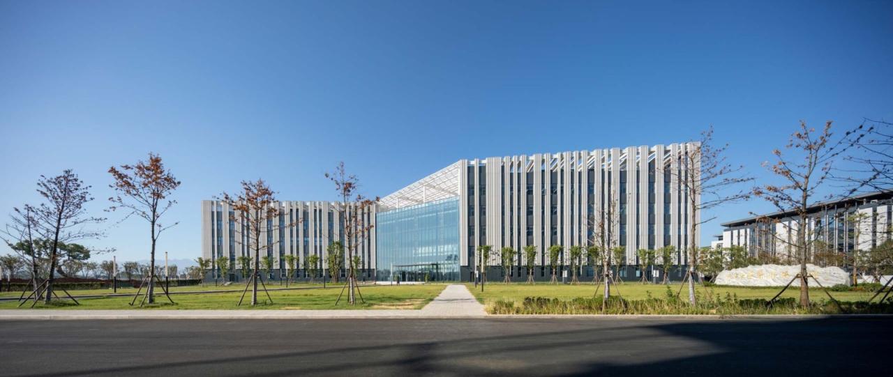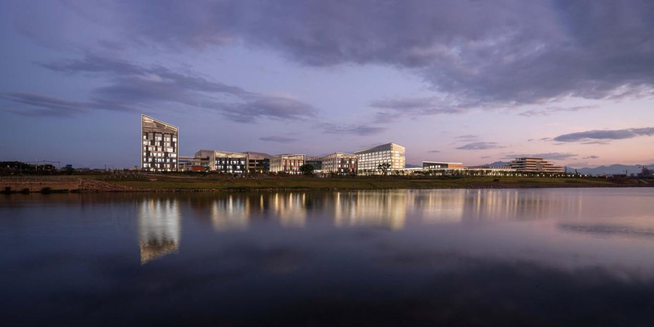 浙大衢州“两院”(浙江大学衢州研究院与工程师学院衢州分院)项目位于浙江省衢州市柯城区。法国AS建筑工作室于2019年在国际竞赛中获胜,负责项目的设计与把控。项目已于2022年6月18日正式启用。工作室在自然水岸景观与城市教育建筑群之间寻找适合场地的设计与规划, 校园聚落形态的无界布局,是希望校园与周边产生更丰富的碰撞。对于教育建筑的理念,犹如种下一棵树,予以适合的温度、水分、空气,得到足够的能量和空间之后,向下扎根向上生长。