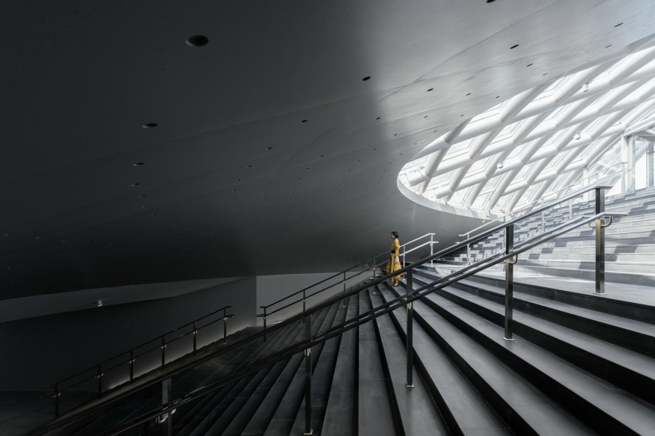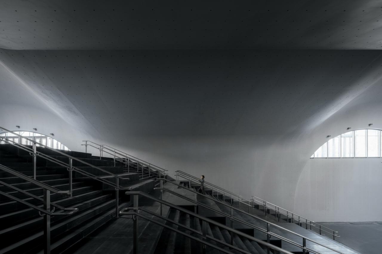 毫无疑问,天光塑造了艺术宫的灵魂。通常的地下建筑更多是庇护所,天光把艺术宫这个巨大殿堂背后的“深”给展现出来了,从而让艺术宫具有了精神性和神圣性。你站在这一组被天光所引导的空间里,会觉得似乎有无限的时间,或者只有时间。“深”让你失去方向感,那个我们一出生就无法拒绝的时间之矢似乎失去了方向感。天光在地面上的影子在漫长地变化,你一开始会焦急,然后有些无奈,你欣赏这美丽的光,熟悉也有些陌生,触摸不到天光却在它的投射中,你会想起一句话,在你存在的刹那前后,都是黑暗。你会痛苦,也感受到寂寞,更会感慨生命的奇妙,不由得想低低吟诵几句,或者跳舞。